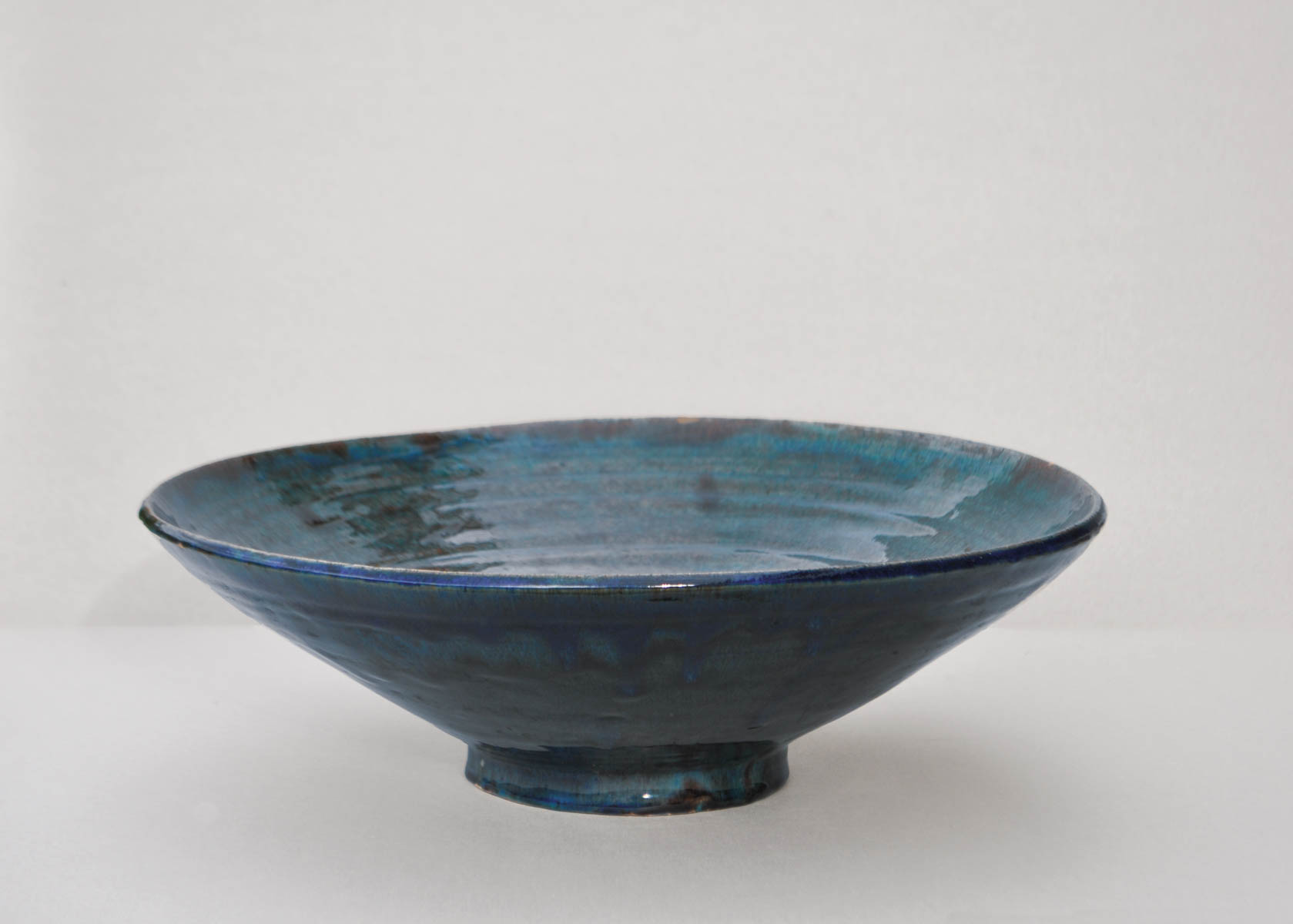 Maria Delago (St. Leonhard 1902 - Brixen 1979) Grande ciotola blu, 1958;Ceramica smaltata, D 36,5, piccola mancanza