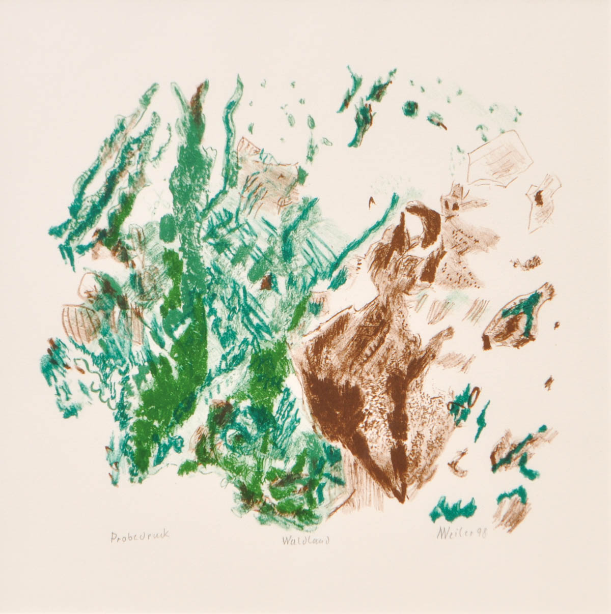 Max Weiler Paesaggio forestale, 1998;Litografia a colori, 35,5 x 35,5 cm...