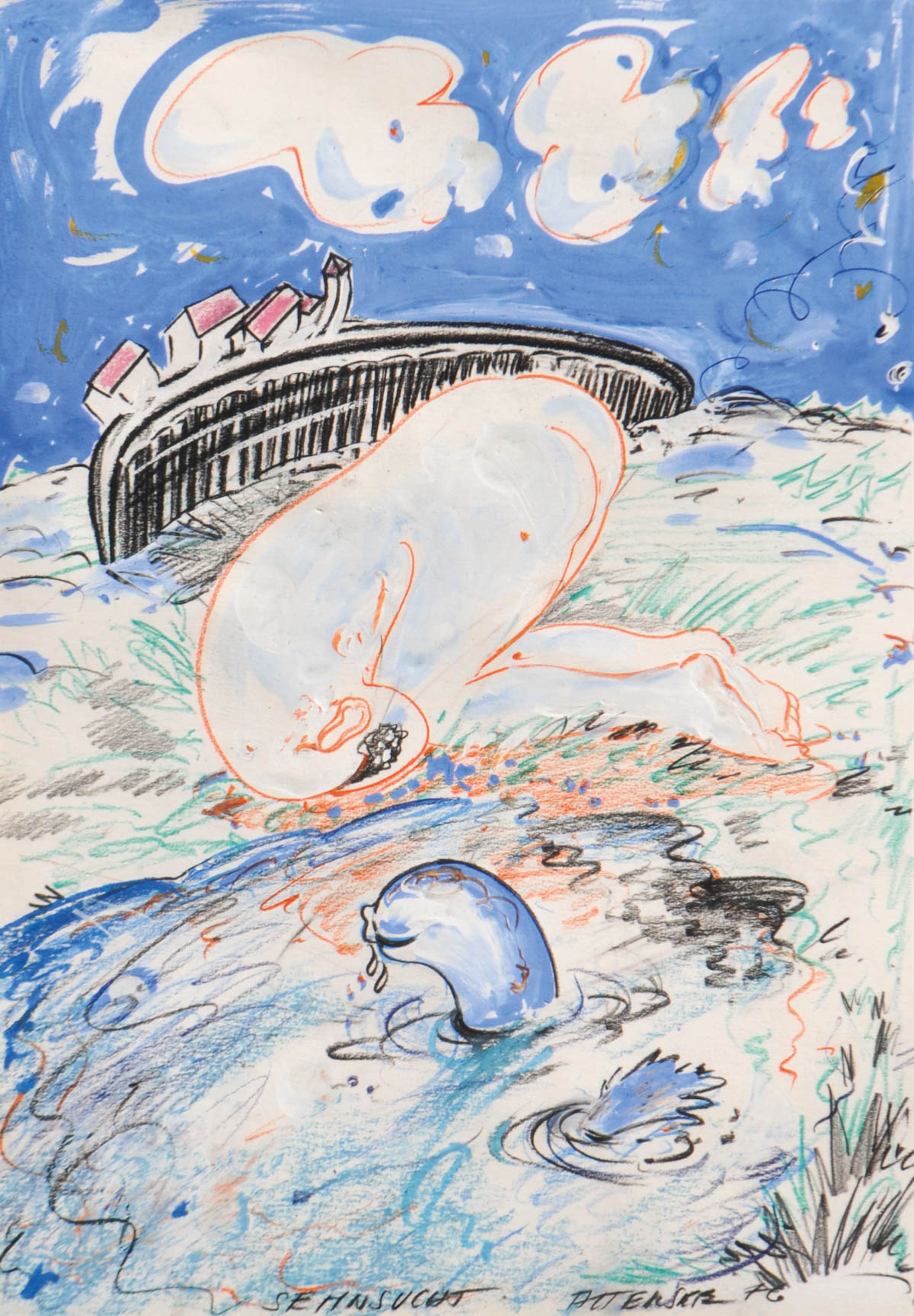Christian Ludwig Attersee (Pressburg/Bratislava 1940) Desiderio, 1976;Tecnica mista, 31 x 22 cm, in cornice