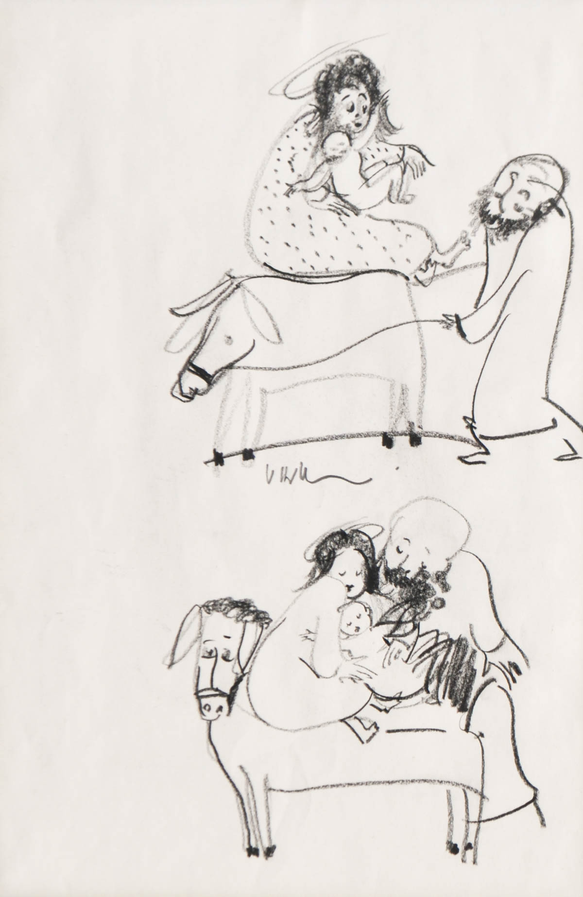 Vladislav Kavan (Baska, Tschechoslowakei / 1924 -Bozen 2003) Fuga dEgitto;Gessetti neri, 41 x 27 cm, in cornice