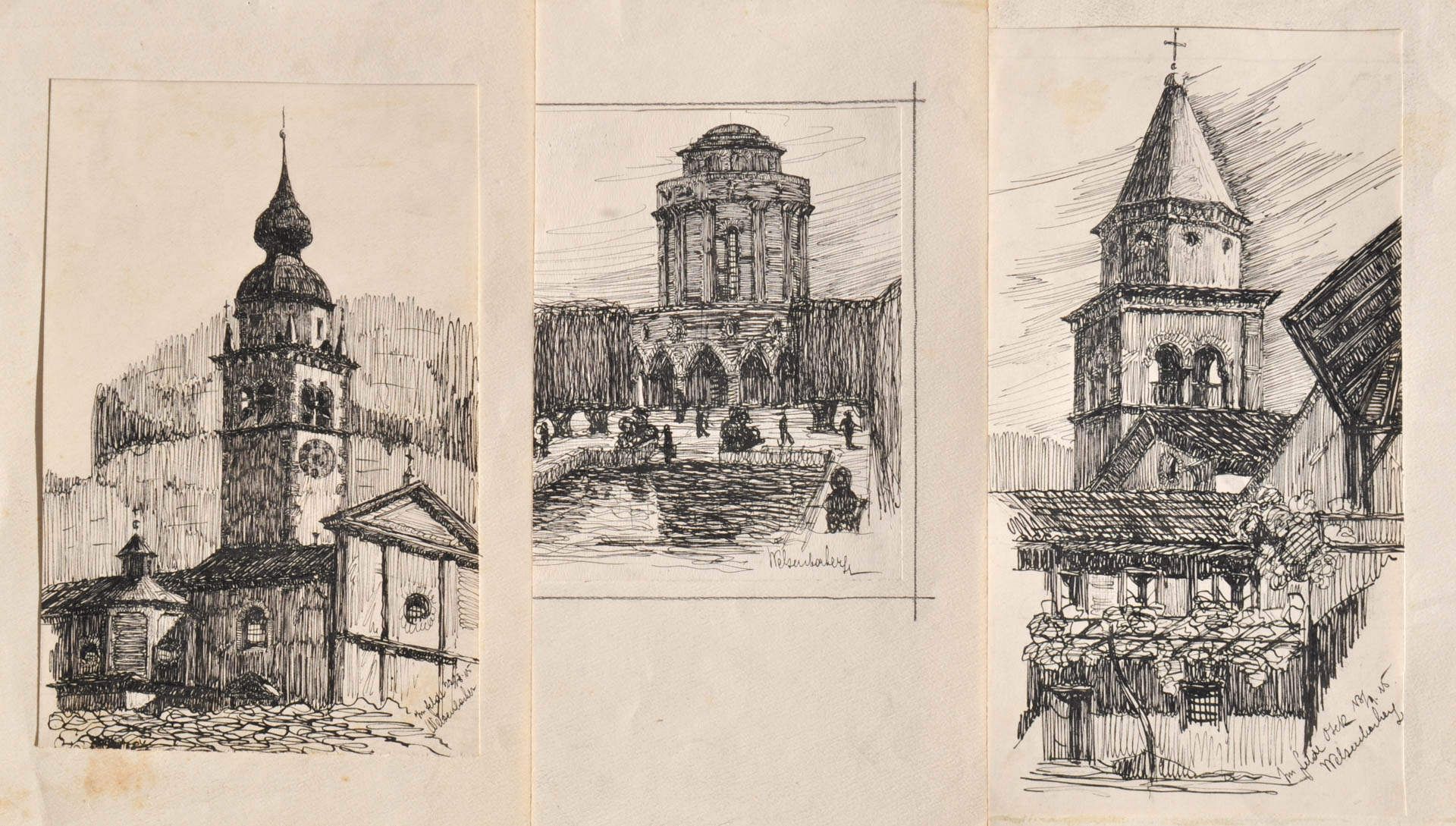 Lois Welzenbacher (München/Monaco di Baviera 1889 - Absam 1955) Motivi architettonici dellItalia settentrionale, 1915;3 disegni a china, 23,5 x 15 cm, 17,5 x 13 cm, 27,5 x 15 Firma e data;i m Felde;