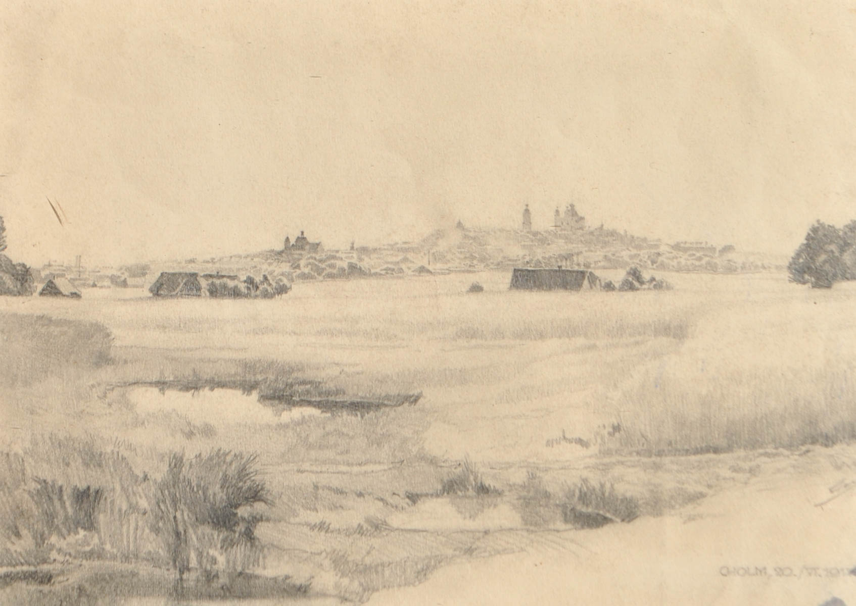 Franz Lenhart (Bad Häring 1898 - Meran/Merano 1992) Cholm, Novgorod, 1917;Disegno a matita, 21 x 29 cm, incorniciato
