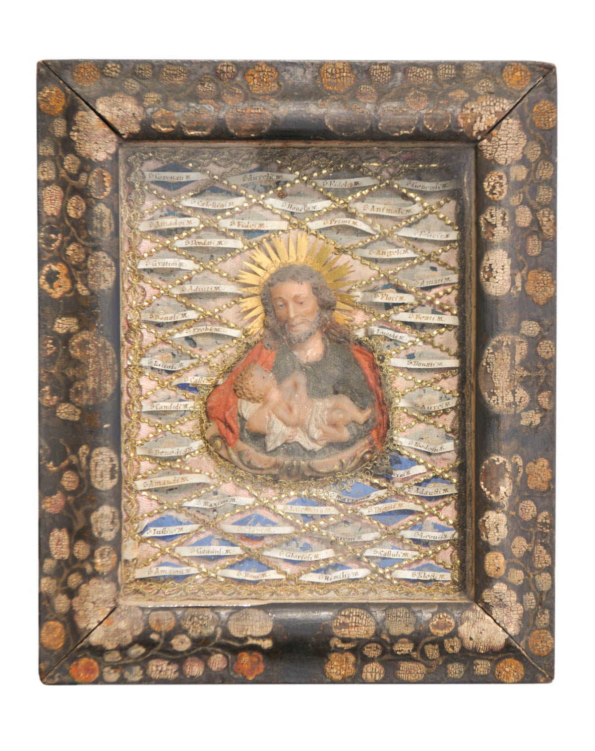 Anonym/Anonimo Produzione monastica Hl. Josef mit Jesuskind, prima met` del XIX sec.;27 x 22,5 cm cornice inclusa