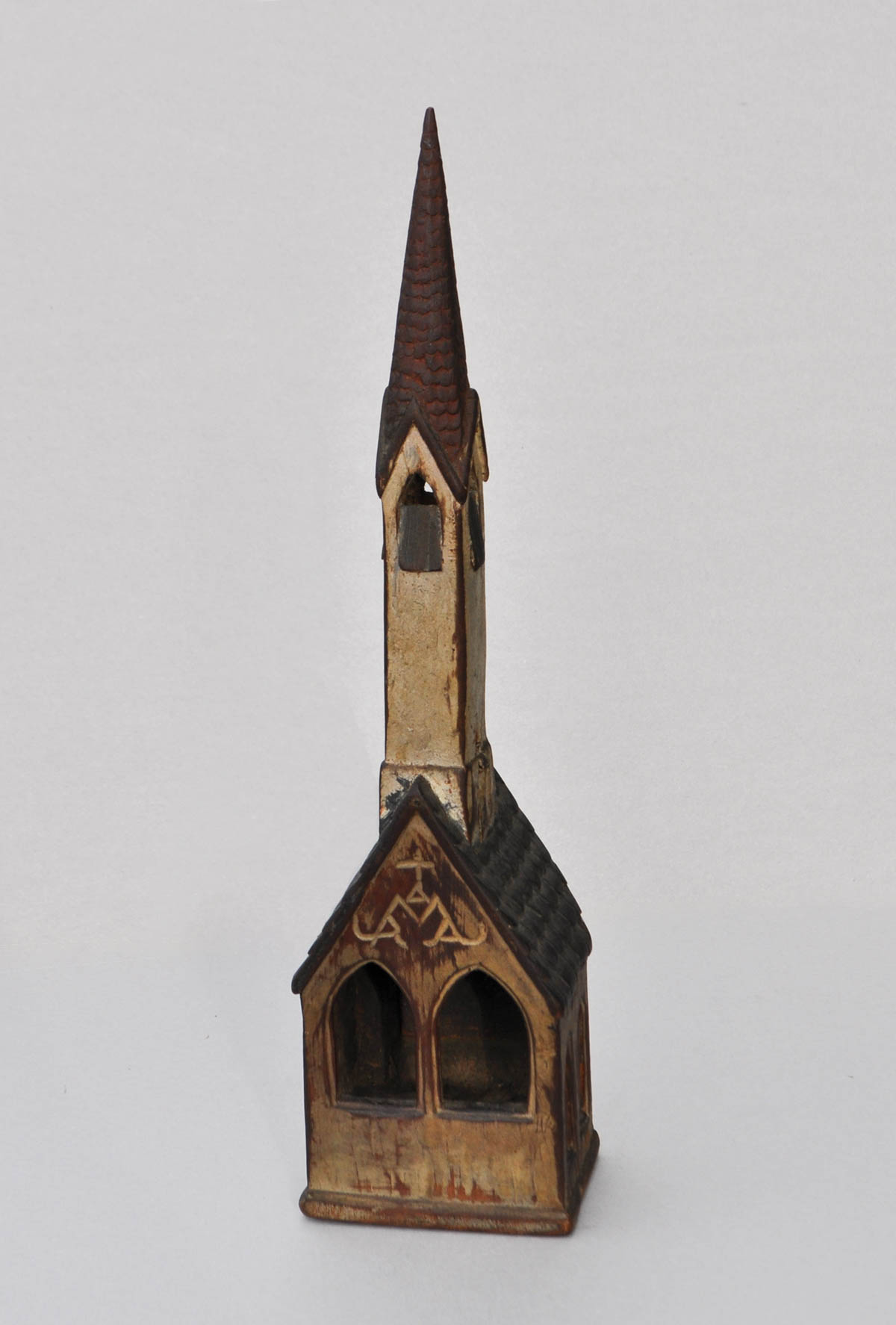 Anonym/Anonimo Chiesetta gotica custode del sale, Tirolo, primo XIX sec.;Legno dipinto, H. 45 cm, tracce di usura