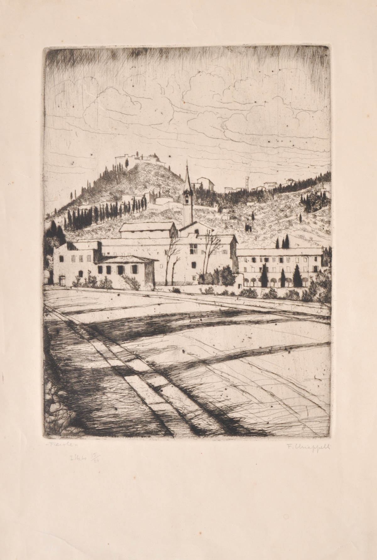 Francesco Chiappelli (Pistoia 1890 - Florenz/Firenze 1947) Fieseole;Acquaforte, 32 x 23,5 cm (lastra)