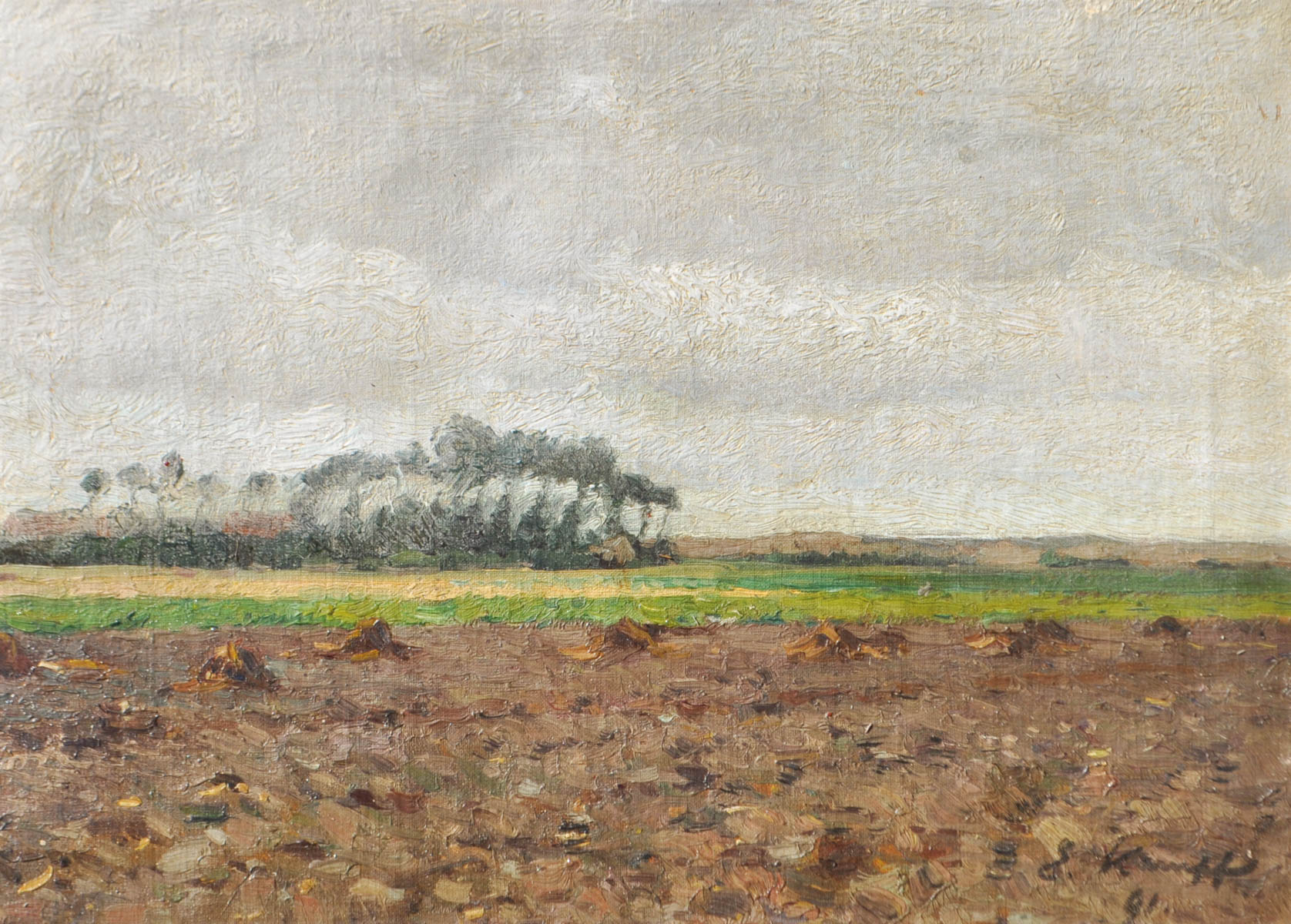 Eugen Kampf (Aachen 1861 - D|sseldorf 1933) Campo, 1891;Olio su tela, 28,5 x 40,5 cm, piccoli ritocchi,