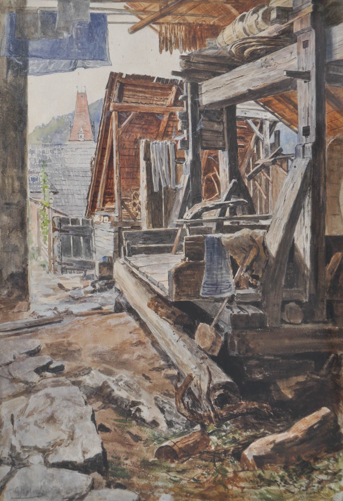 Georg Holub (Br|nn/Brno 1861 - Wien/Vienna 1919) Vecchio fienile;Acquerello, 50 x 34,5 cm, in cornice