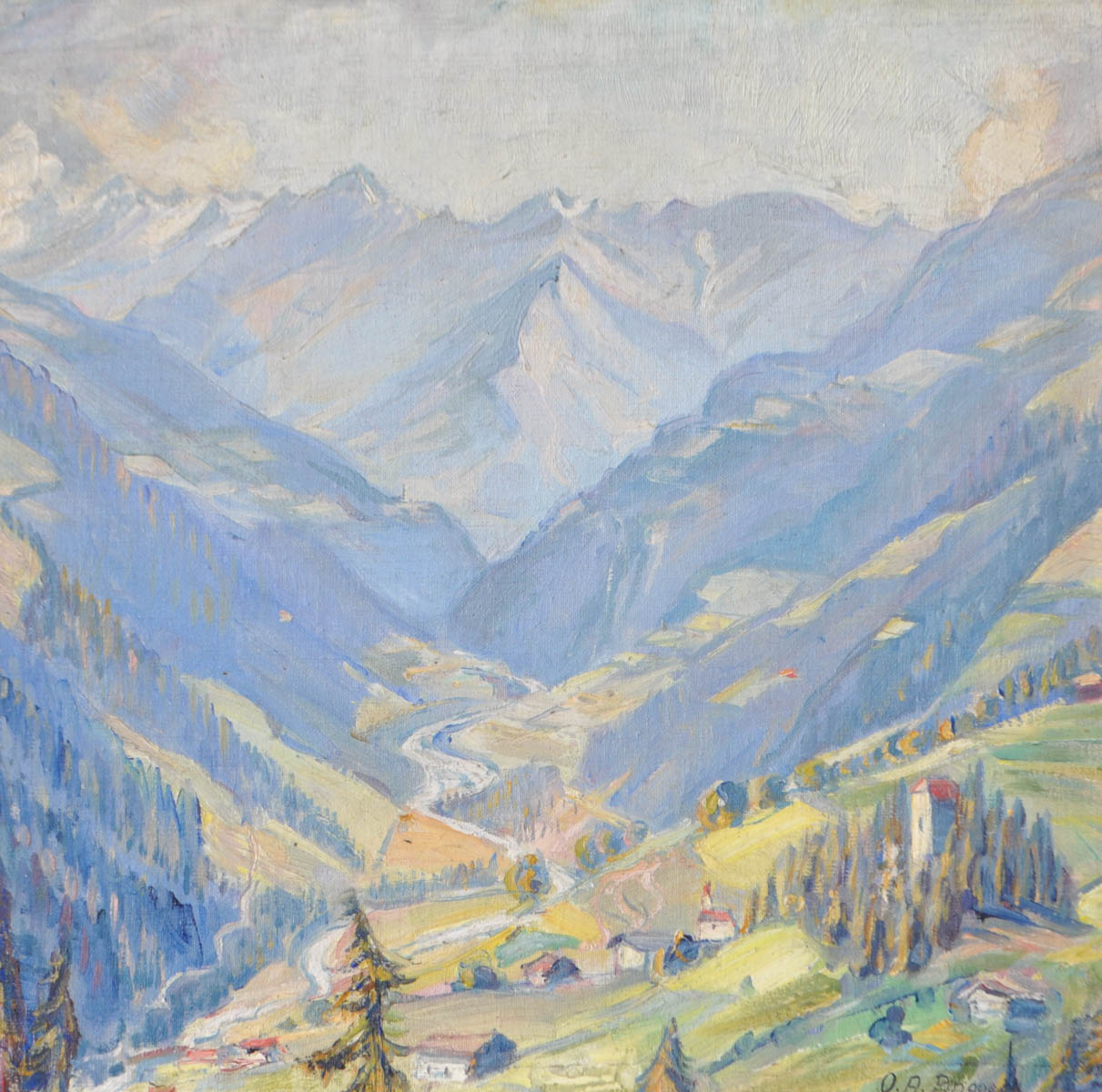 Otto Ander Pinggera Val Passirio con castel Jaufenburg, 1930 ca.;Olio su cartone, 31 x 31,5 cm, in cornice