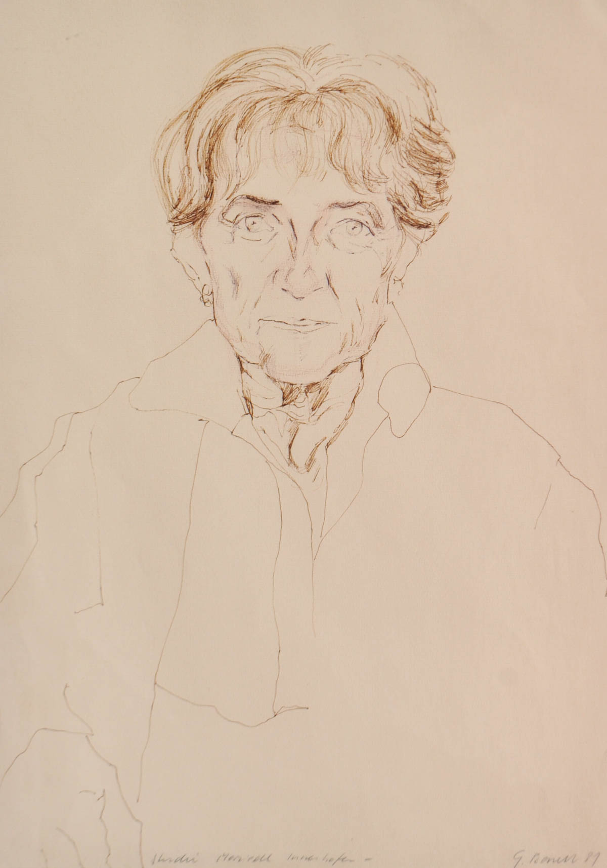 Gotthard Bonell (Truden/Trodena 1953,) Maridl Innerhofer, 1981;Disegno a penna, 47 x 35 cm, in cornice