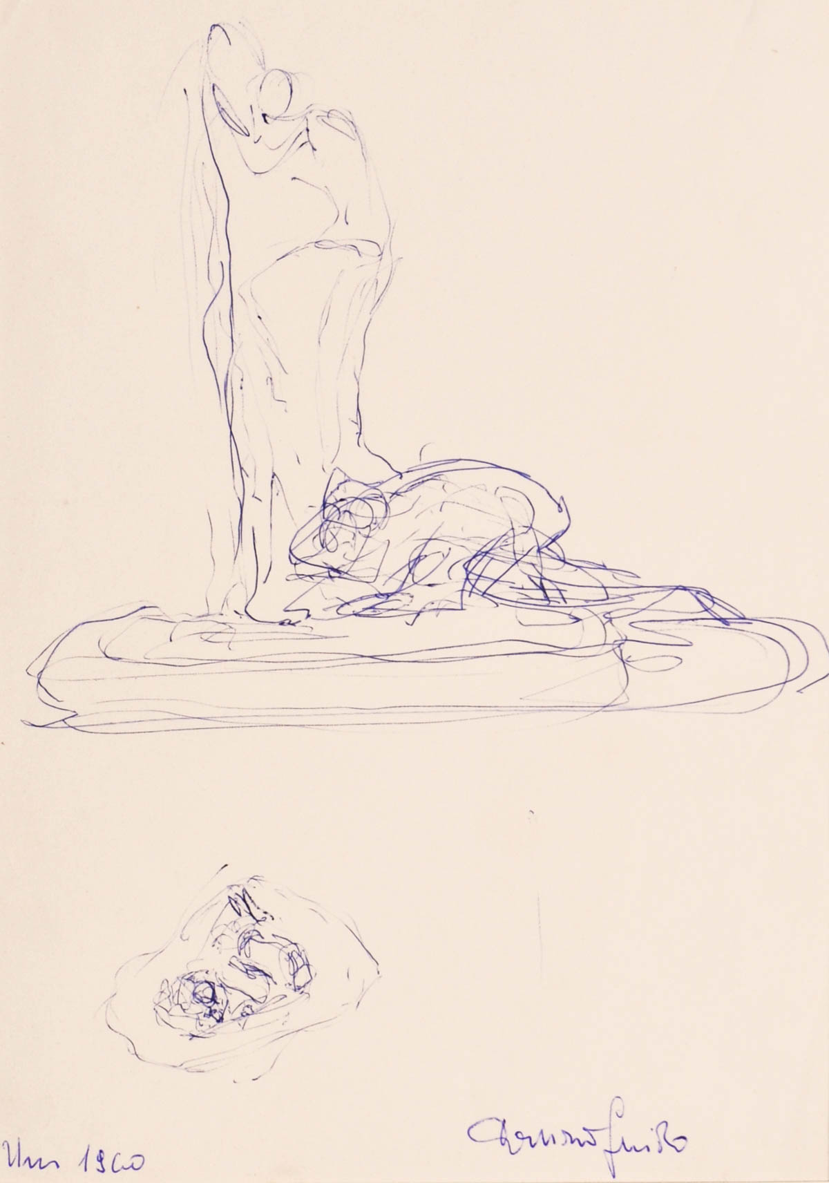 Guido Daurz (Rocca Pietore 1926 - St. Ulrich in Gröden/Ortisei 2010) Figure, 1960 ca.;Biro, 29,3 x 20,7 cm
