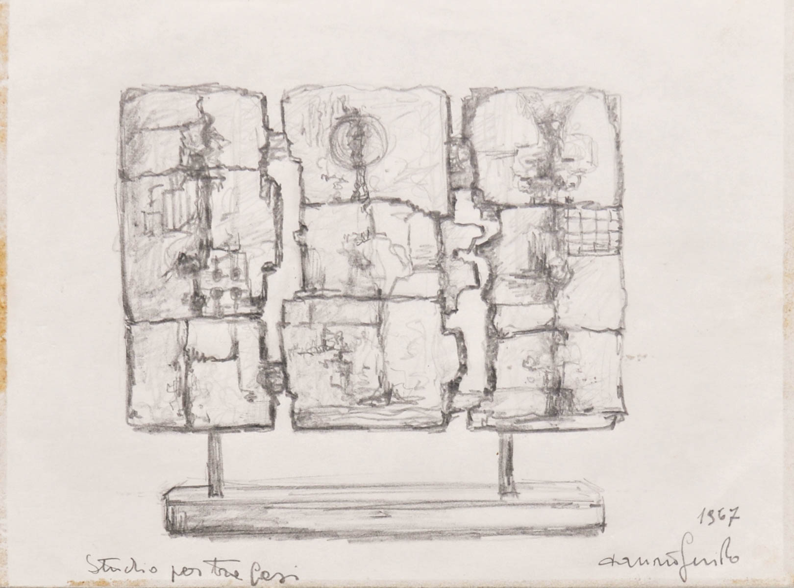 Guido Daurz (Rocca Pietore 1926 - St. Ulrich in Gröden/Ortisei 2010) Studio per tre lesi, 1967;Matita, 15 x 19,5 cm