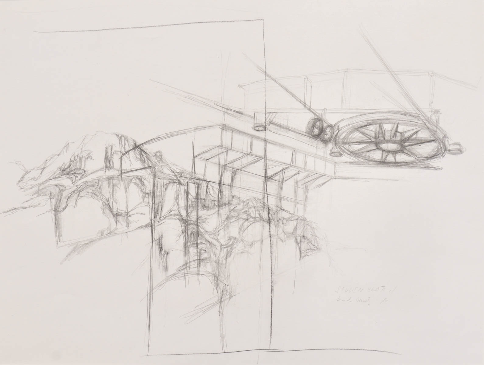 Erich Demetz (Wolkenstein/Selva Gardena 1938, lebt in Lajen/vive a Laion) Azionamento della funivia, 1973;Matita, 43 x 59 cm; firma e data