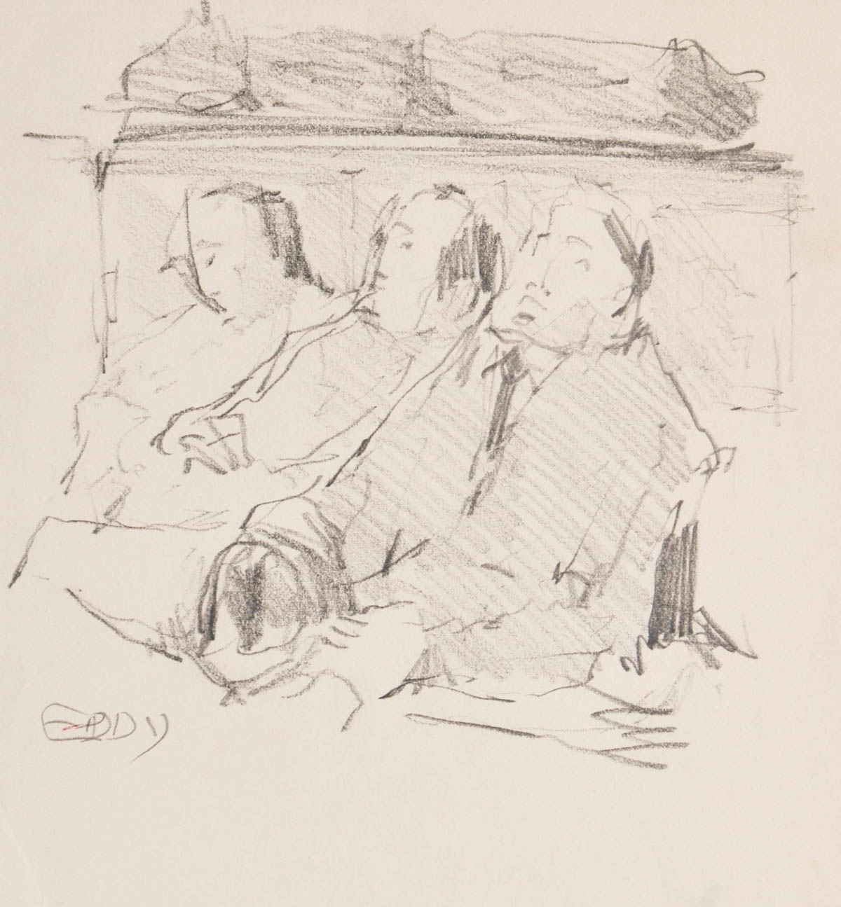 Eddy von Ferrari (Brixen/Bressanone 1923 - Verona 2000) Tre signori nello scompartimento;Matita, 20,8 x 19,5 cm