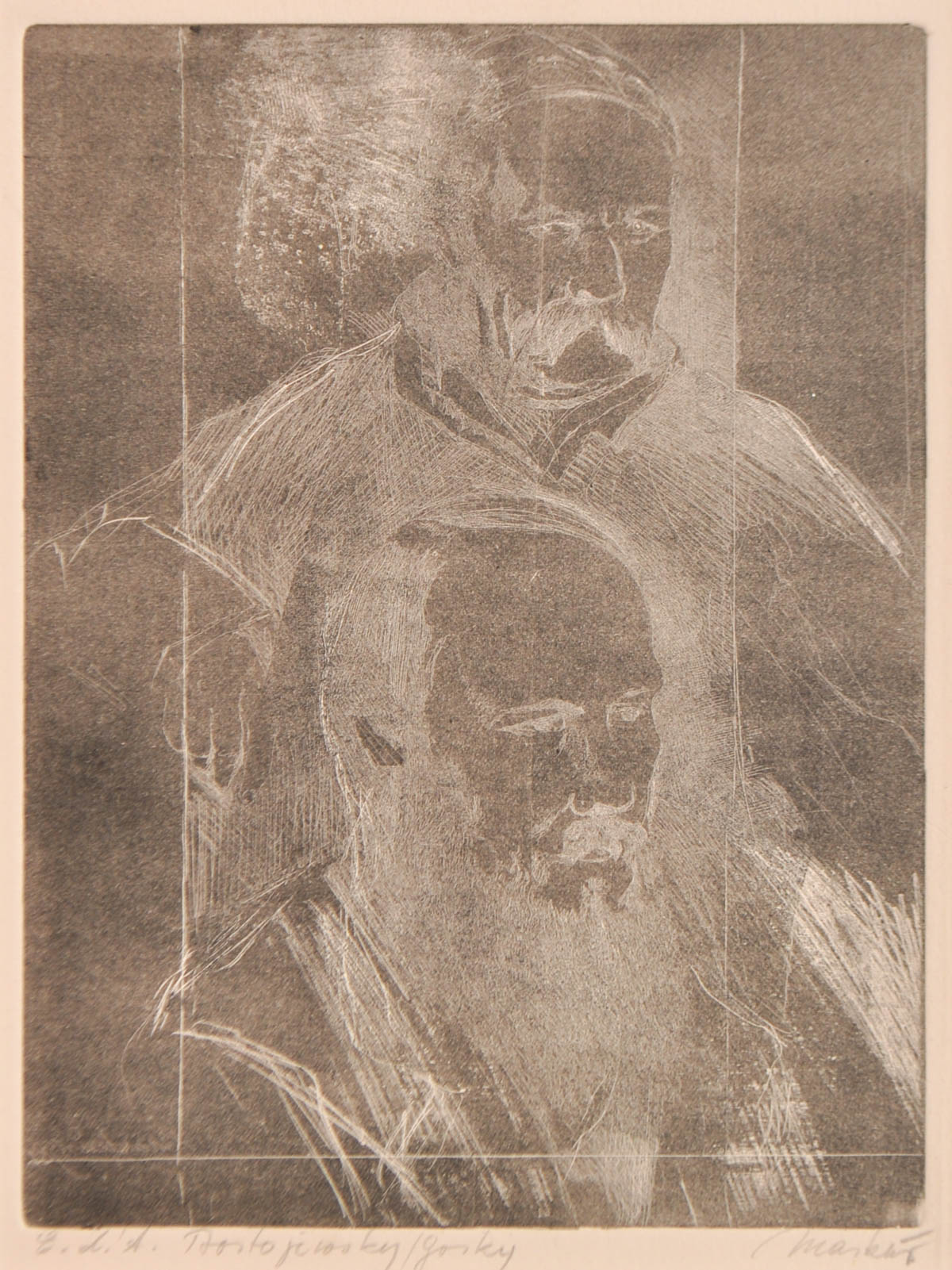 Markus Vallazza Maxim Gorki e Dostojewski, 1981;Acquaforte, 23,8 x 17,8 cm, in cornice
