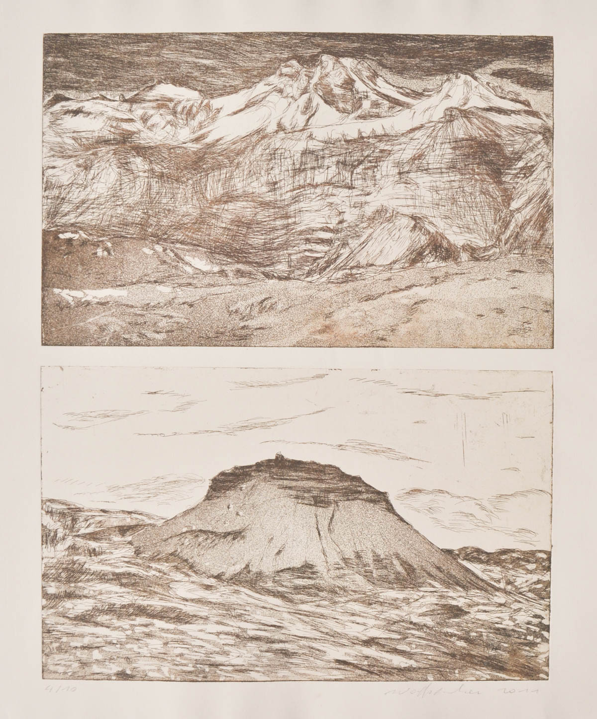 Linda Wolfsgruber Montagne, 2001;2 acqueforti su un foglio, ciascuno 20 x 32...