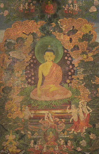 ARTE ORIENTALE "TANKA" DIPINTA SU TELA, TIBET, XIX SECOLO, decoro policromo;...