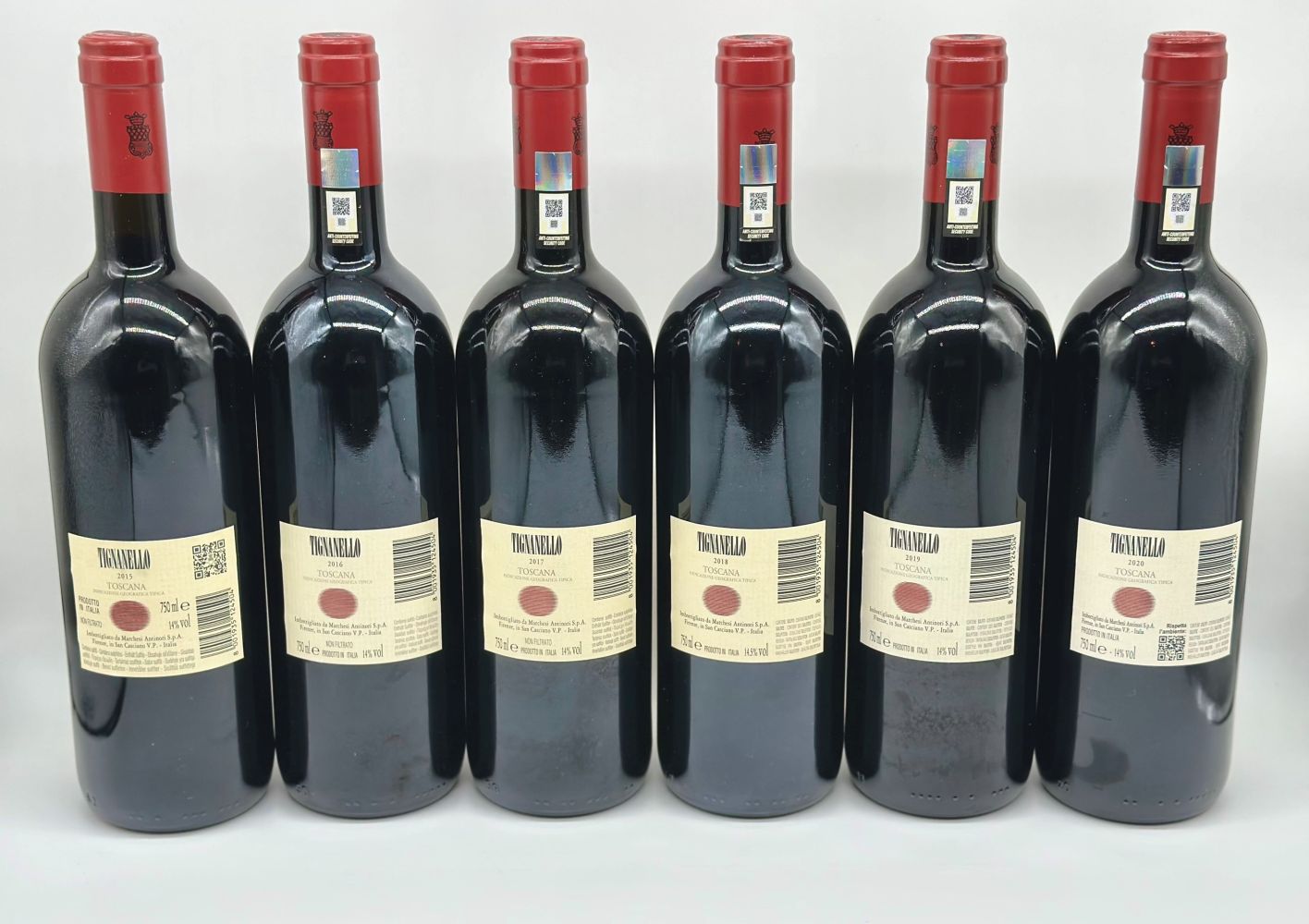Italia-Toscana 0,75 Toscana, Tignanello IGT - 6 bottiglie (bt), annata verticale 2015, 2016, 2017, 2018, 2019, 2020.