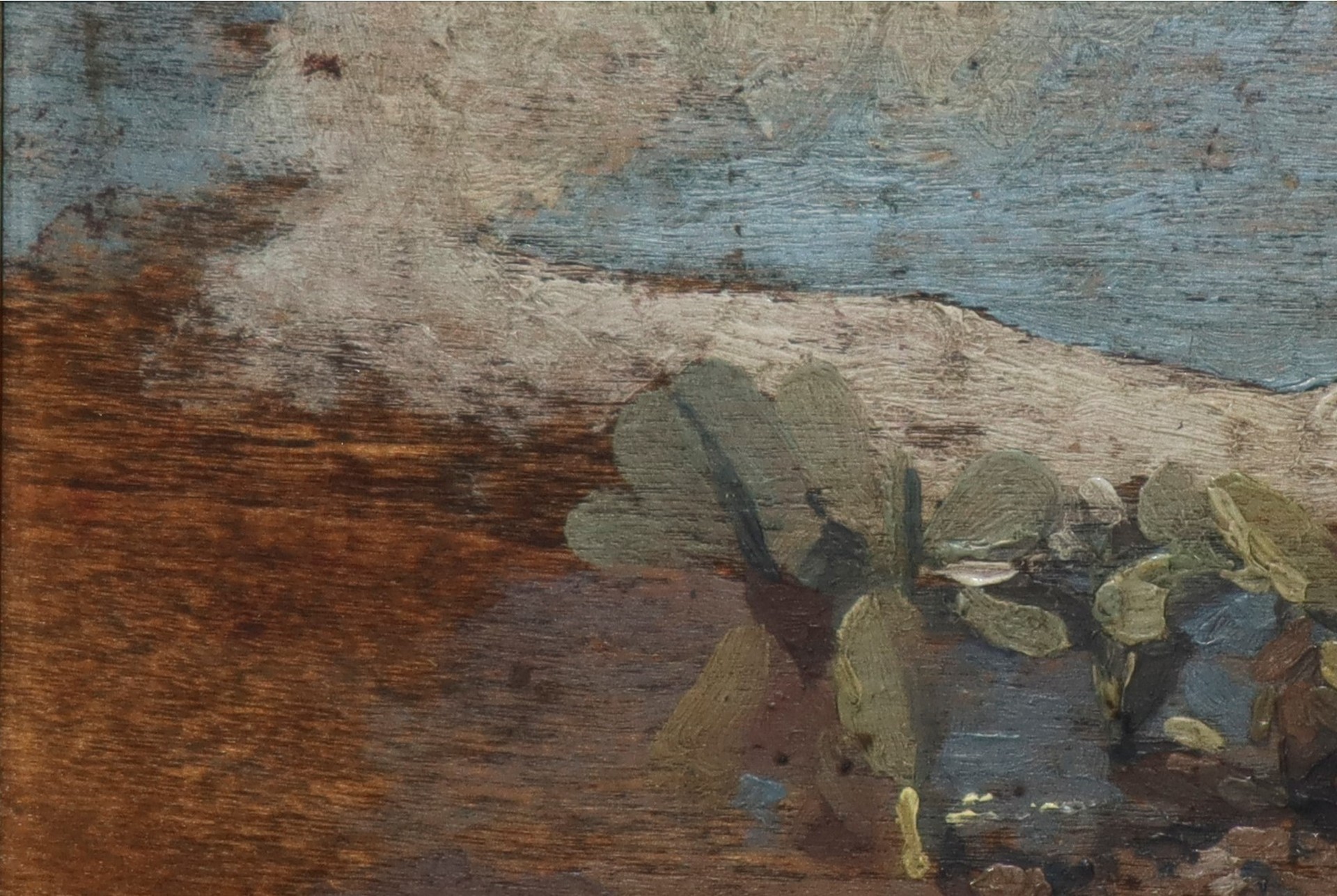 Vincenzo Marano (Acicastello 1938-2016) - Tavoletta raffigurante Fico d'india H cm 6.7 x 11.5 Olio su tavoletta Firmata sul retro V.Marano.