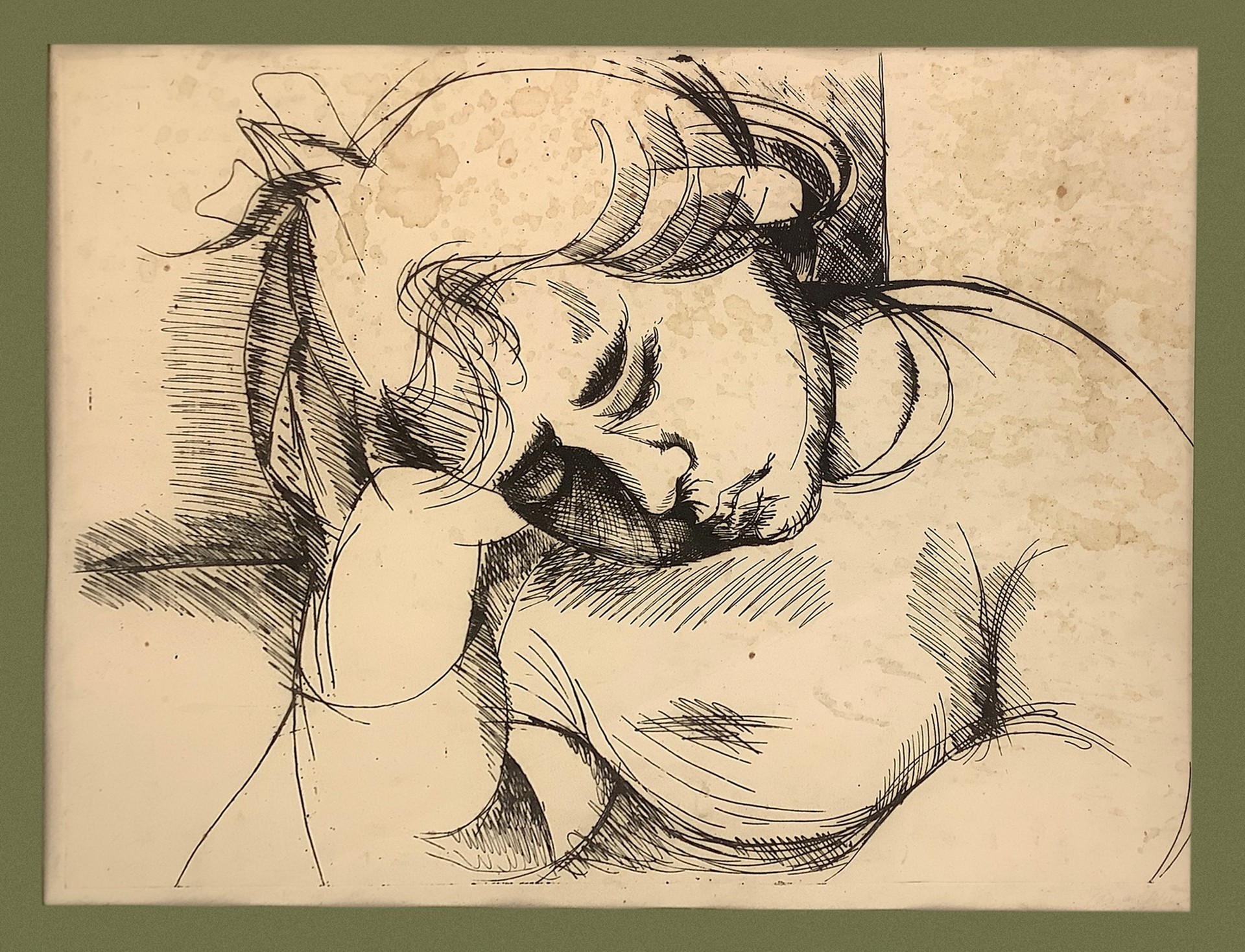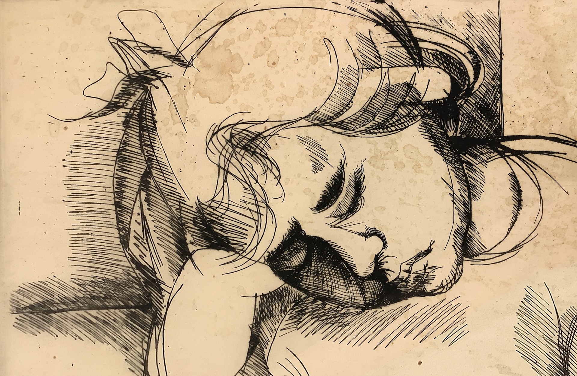 Santo Marino (Militello val di Catania 1924-1991) - Bimba poggiata sul gomito