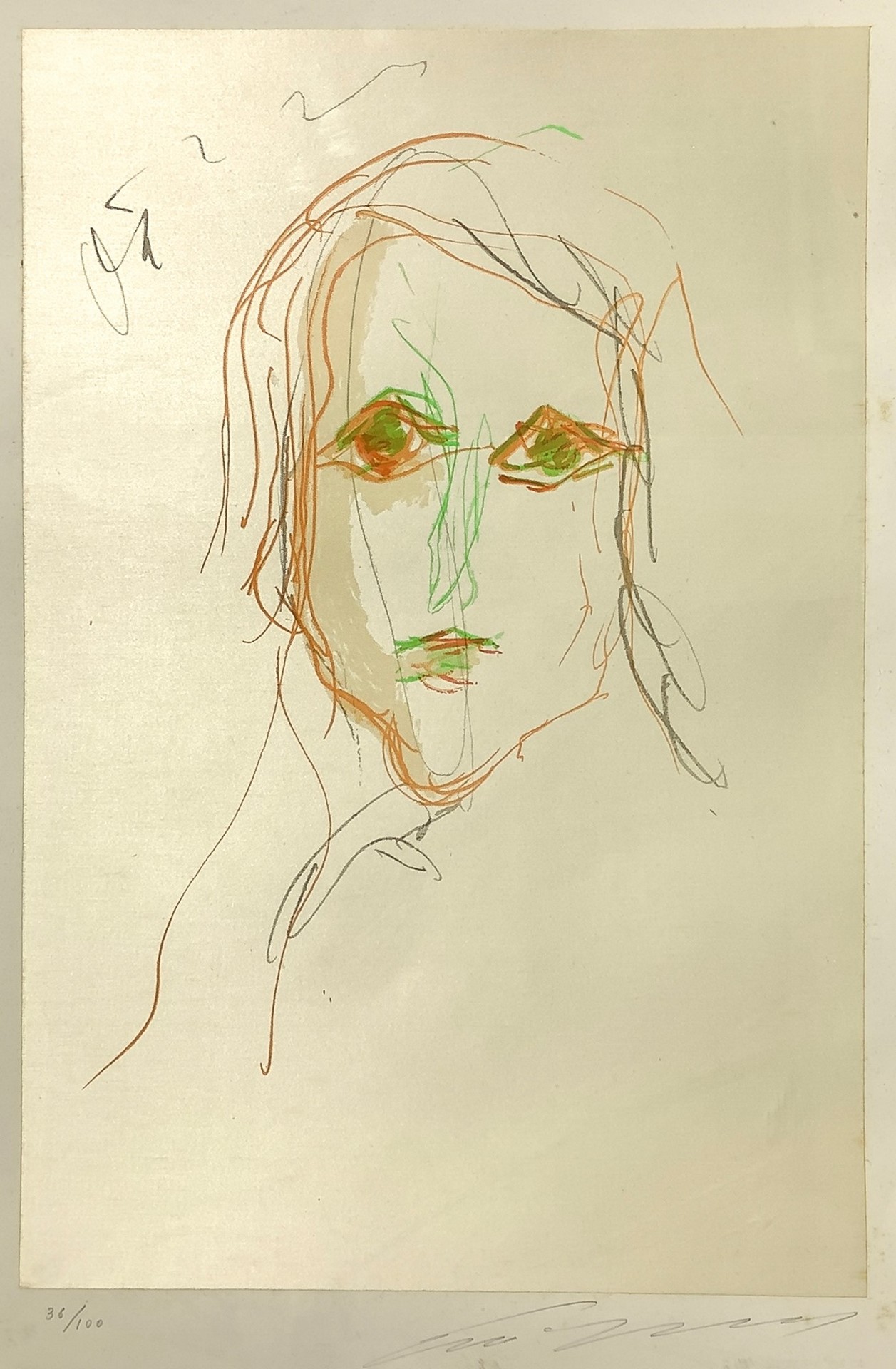 Ernesto Treccani (Milano 1920-Milano 2009) - Volto di donna cm 40 x cm 27, in cornice cm 75 x cm 55 Litografia Firmato in basso, N. 36/100