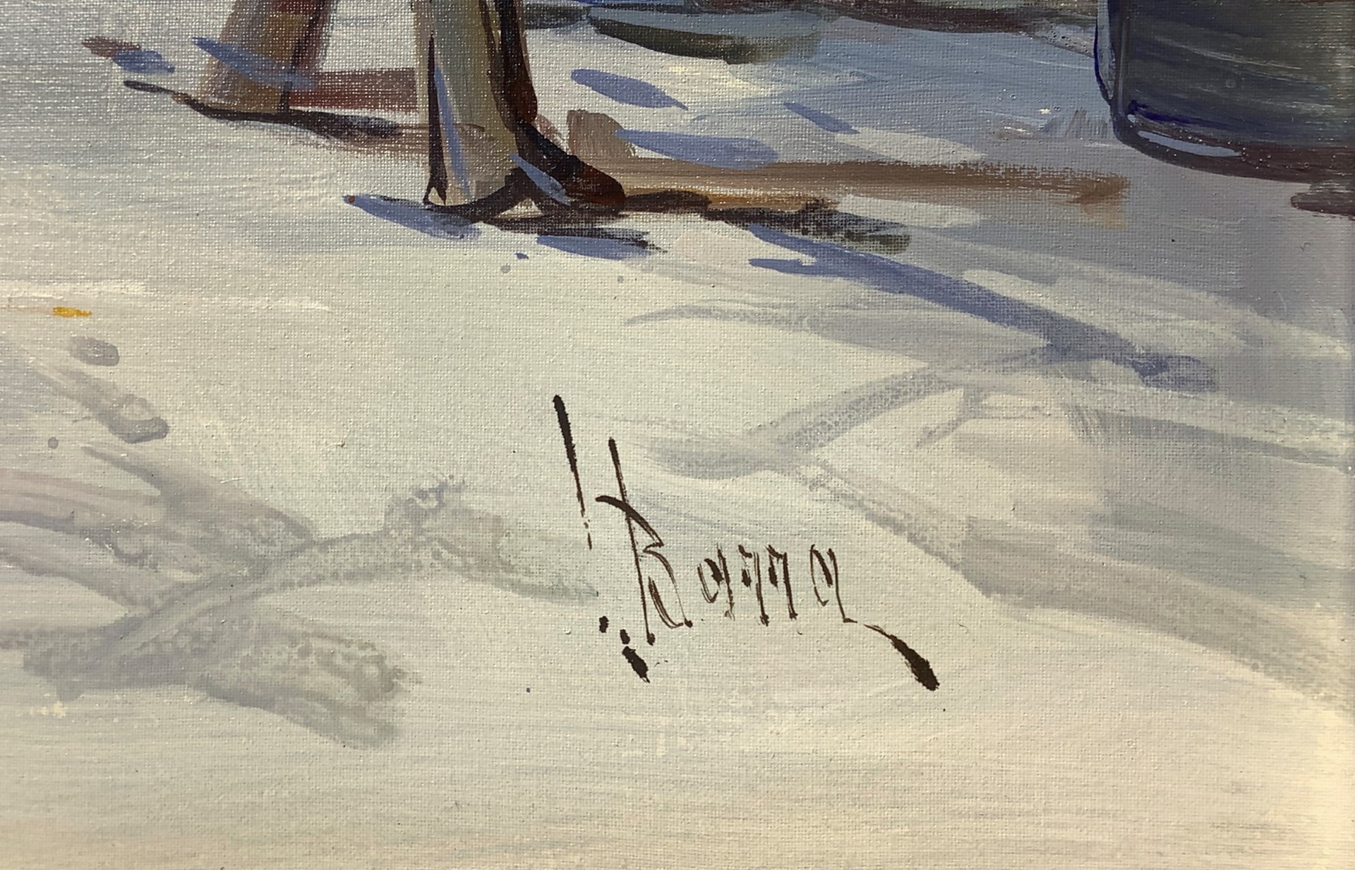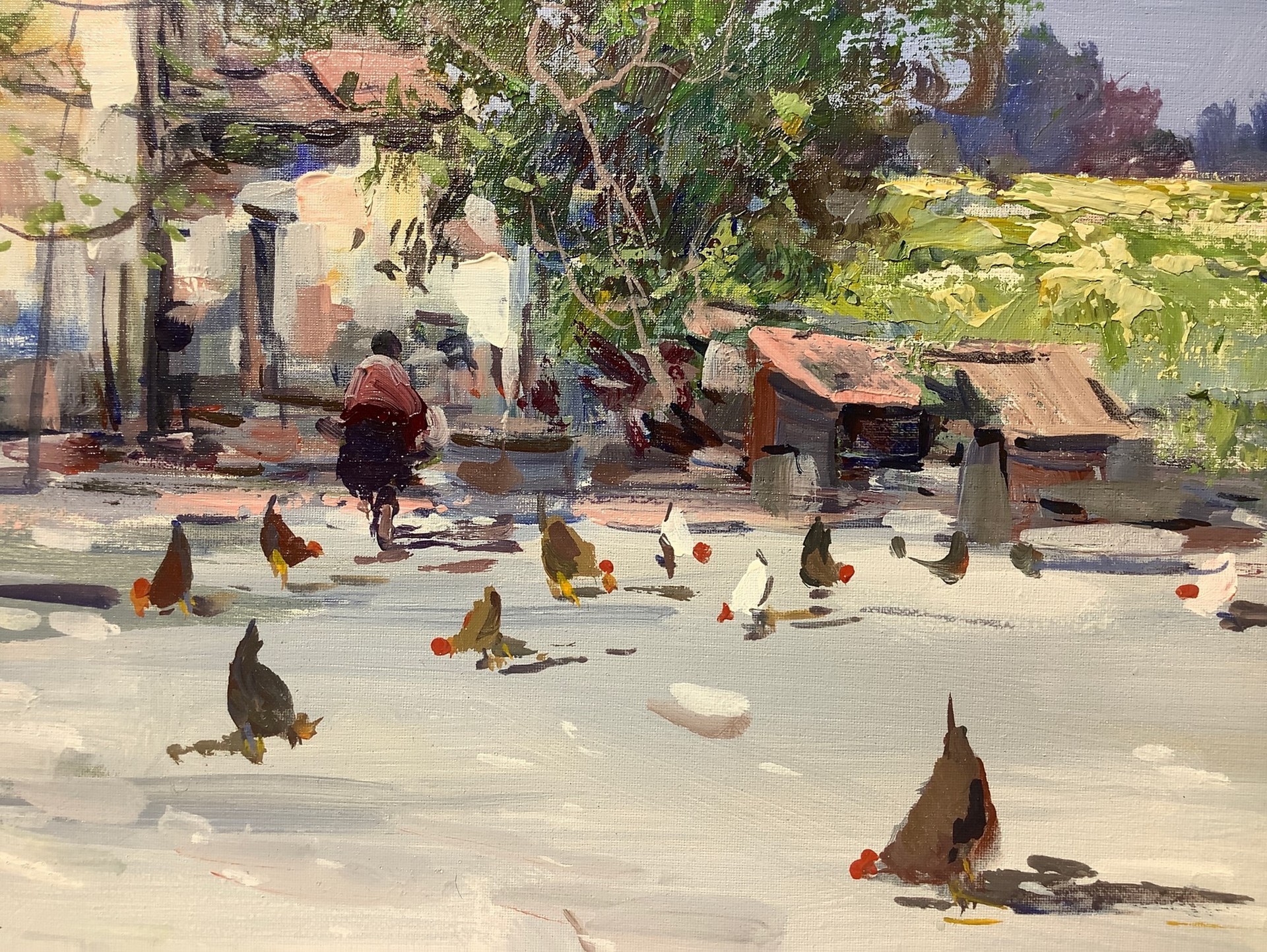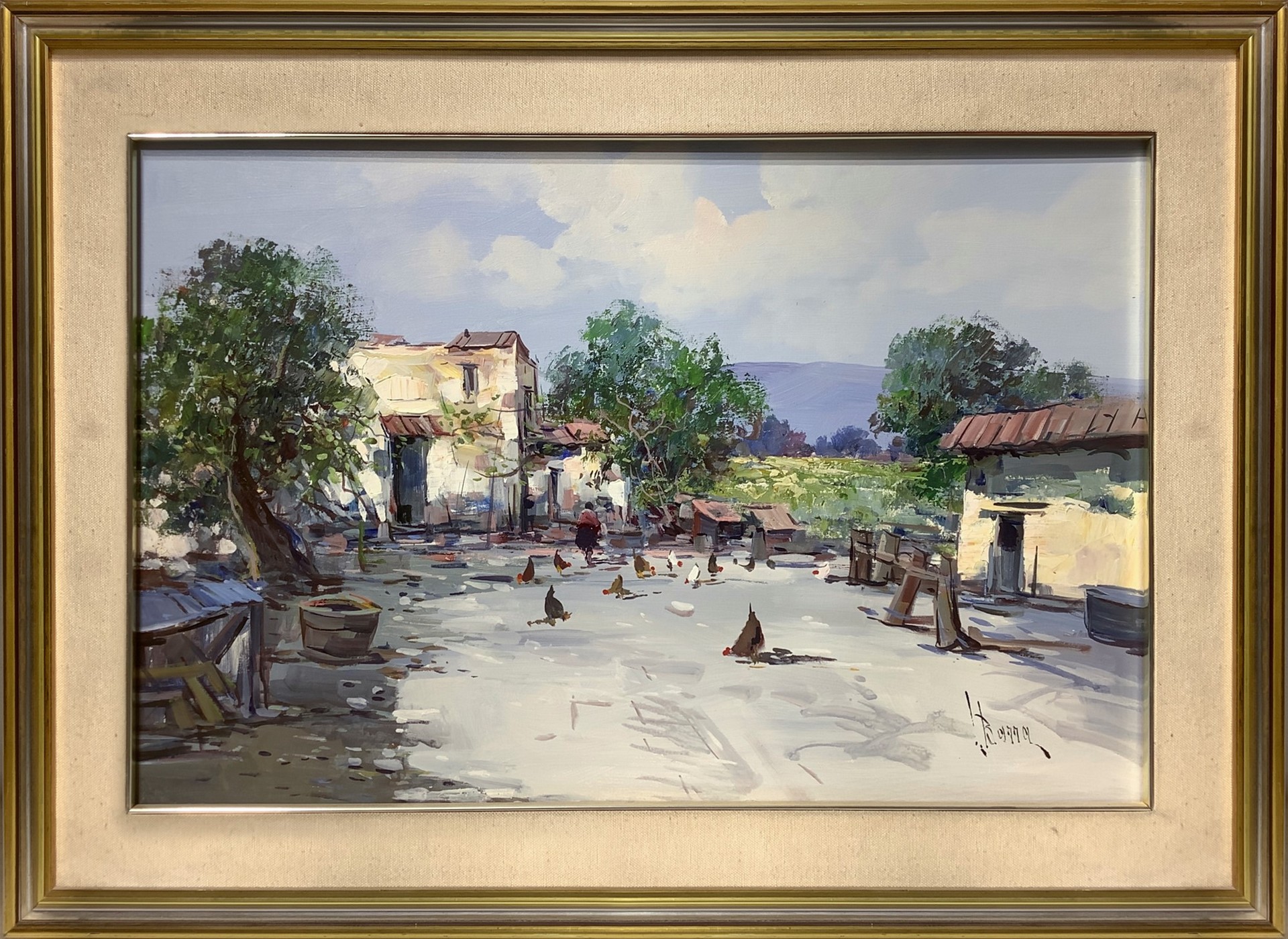 Lelio Barra (Mascalucia) - Case di campagna con galline nell'aia, 20° secolo 40x60 cm, in cornice 53x73 cm dipinto a olio su tela