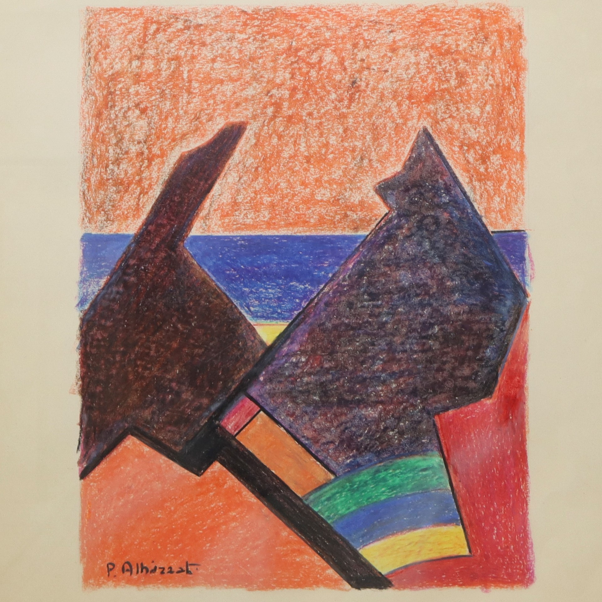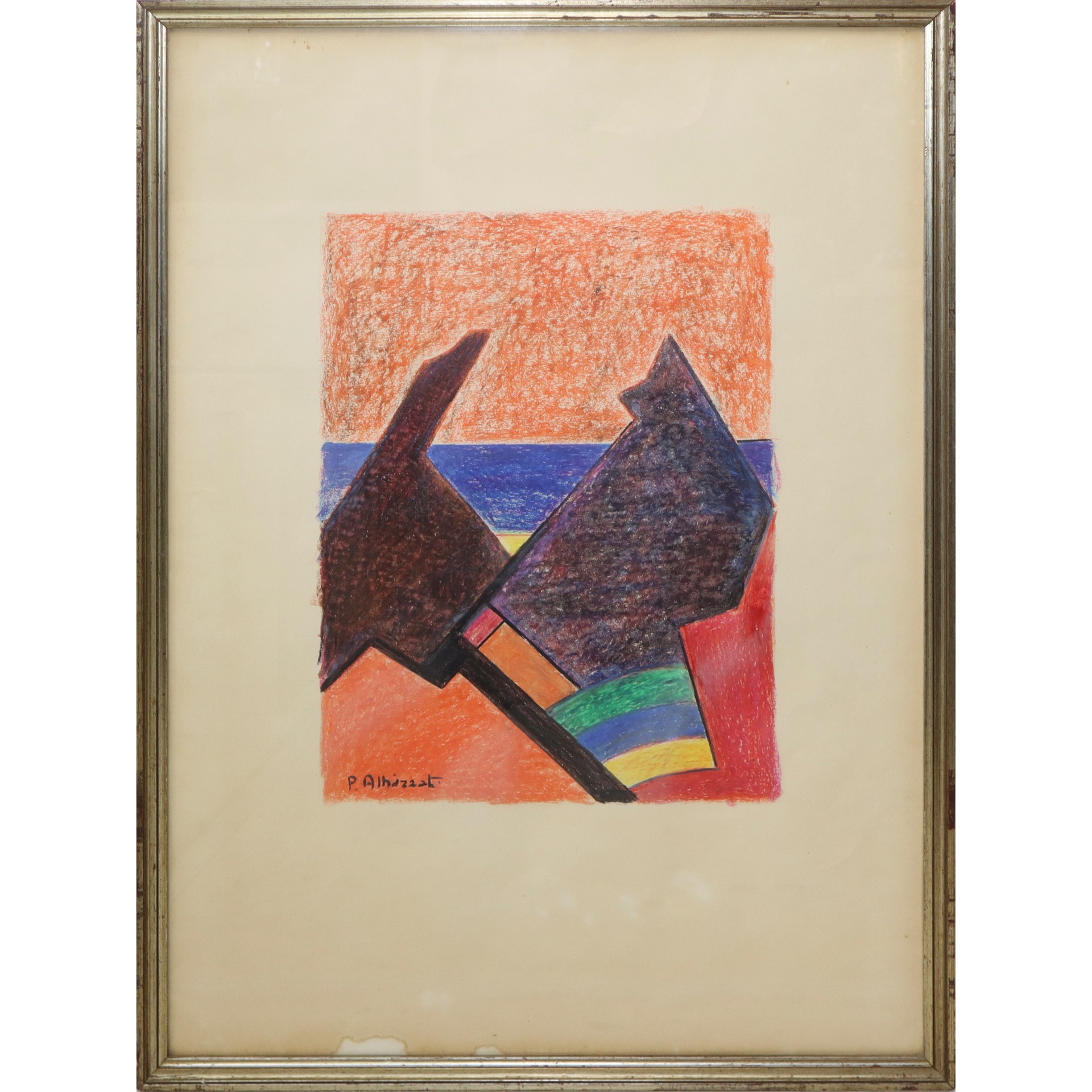 Piero Albiazzati (Vermezzo 16/04/1922-Milano 23/12/2009) - Figura astratta cm 40x30, in cornice 74x54 Disegno a pastello e carboncino su cartoncino