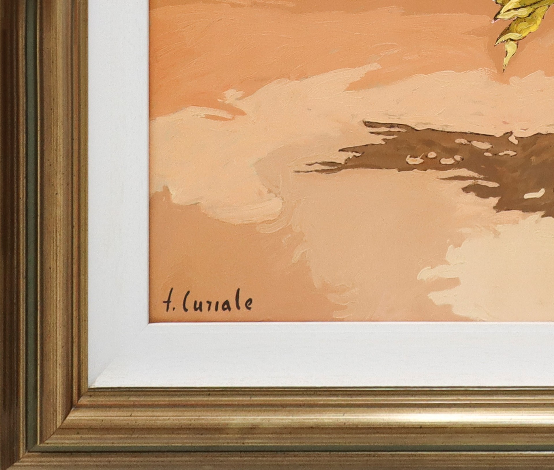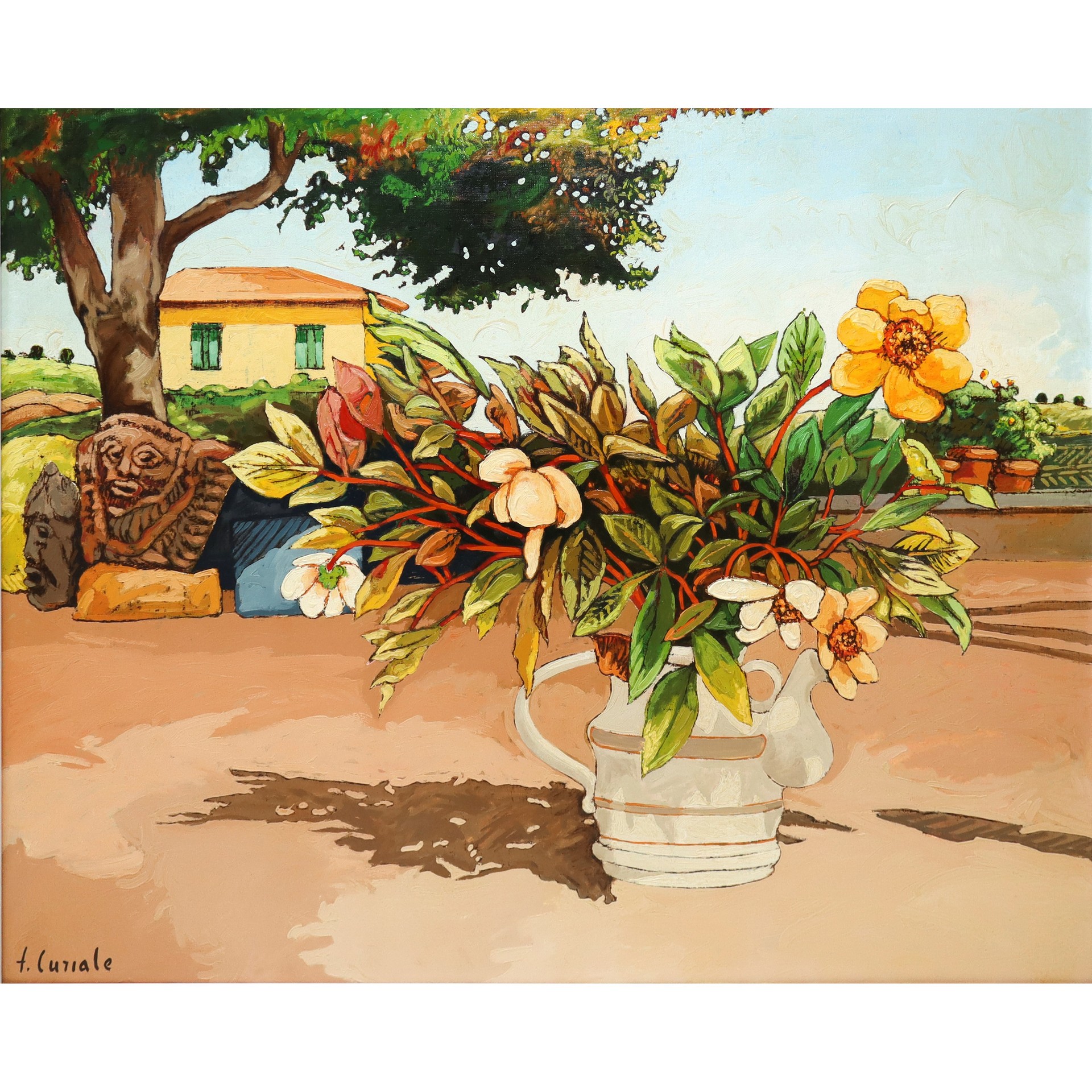 Filippo Curiale - Natura morta di fiori con albero e casa Cm 80 x 100 in cornice cm 107 x 127 Olio su tela Firmato F. Curiale in basso a sinistra