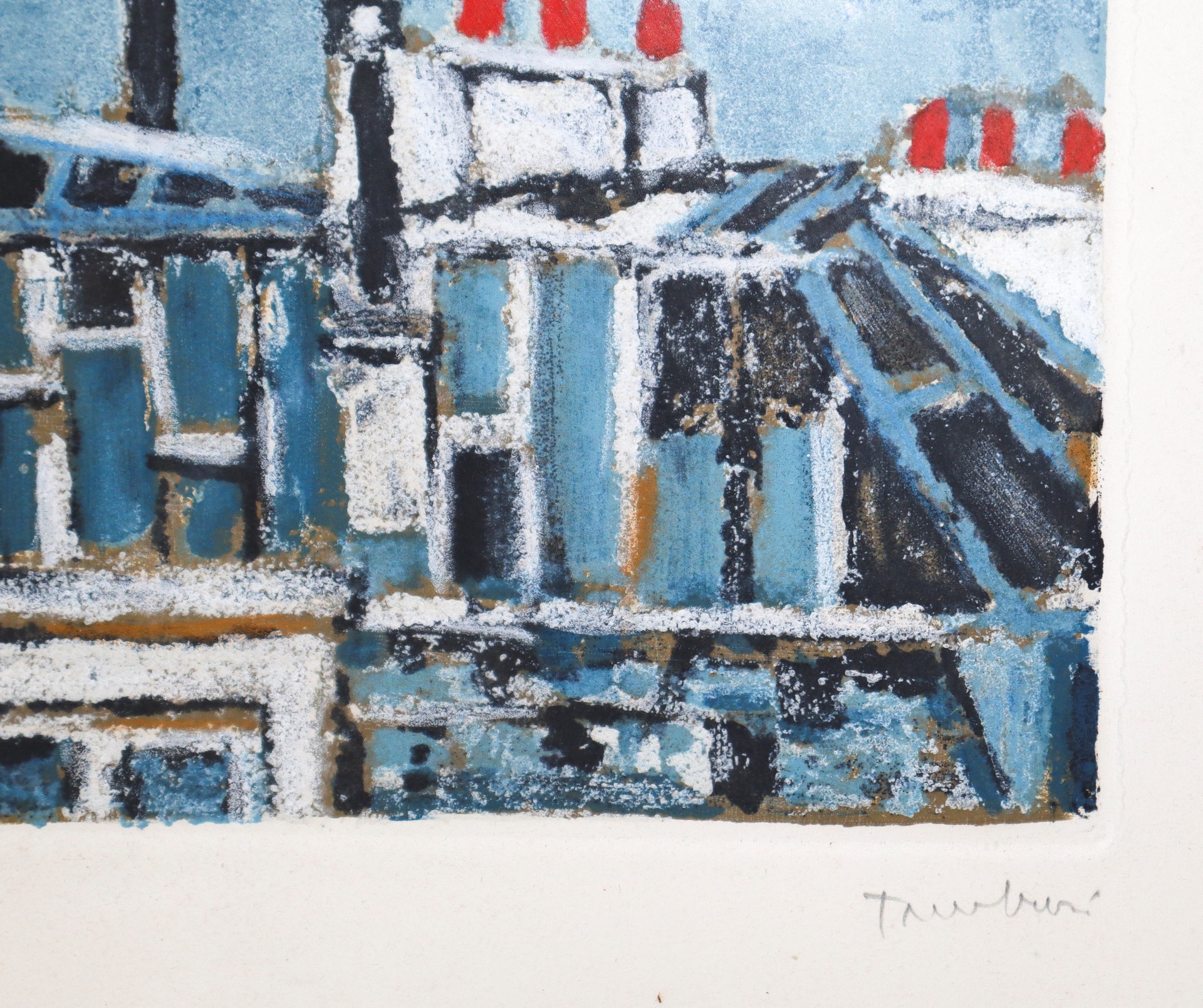 Case con camini Cm 50 x 70 Litografia Firmata Tamburi, 34/120