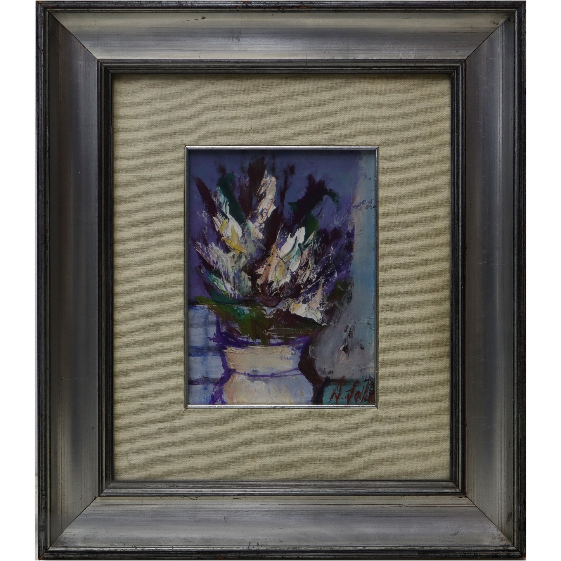 Natura morta vaso con fiori Cm 25 x 18, in cornice 48 x 42 Olio su tela Firmato in basso a destra A. Sots