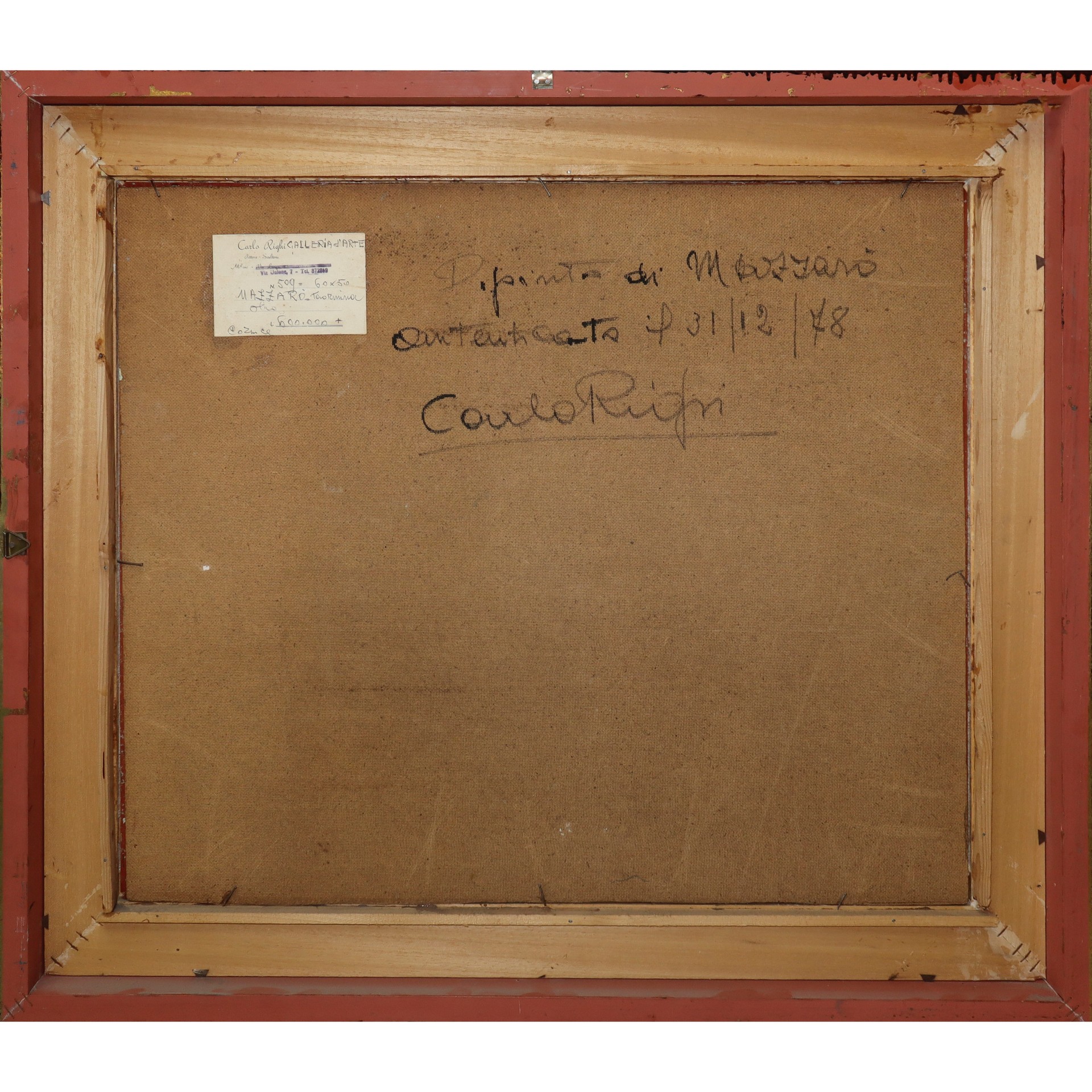 Dipinto di Mazzarò, 1978 cm 50 x 60, in cornice 66x75,5 olio su masonite Firmato in basso a destra Carlo Righi e datato 74. Datato 31/12/1978