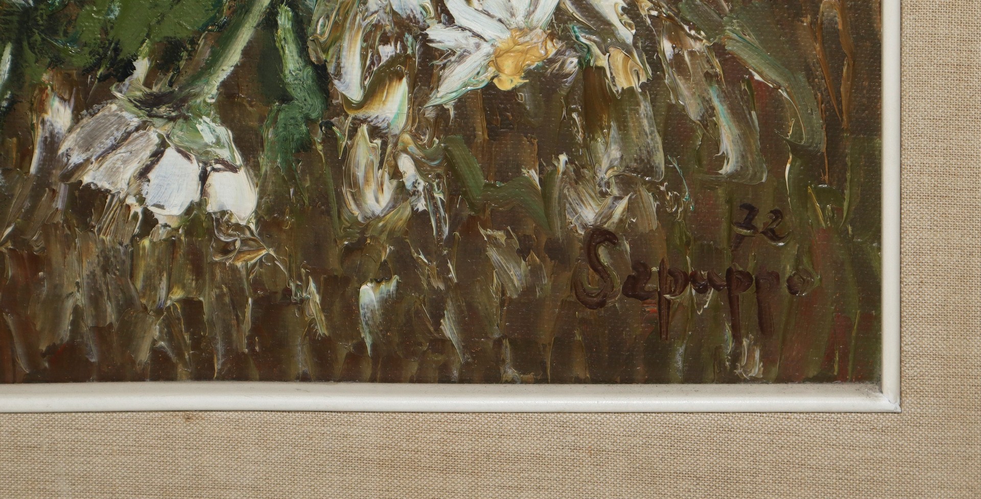 Vaso con fiori 40x30 in cornice 44x54 Olio su tela Firmato in basso a destra Sapuppo e datato 72. Sul retro firmato Sapuppo Salvatore