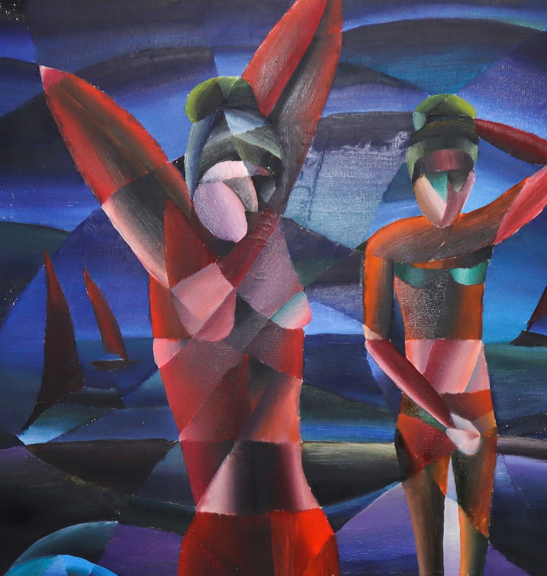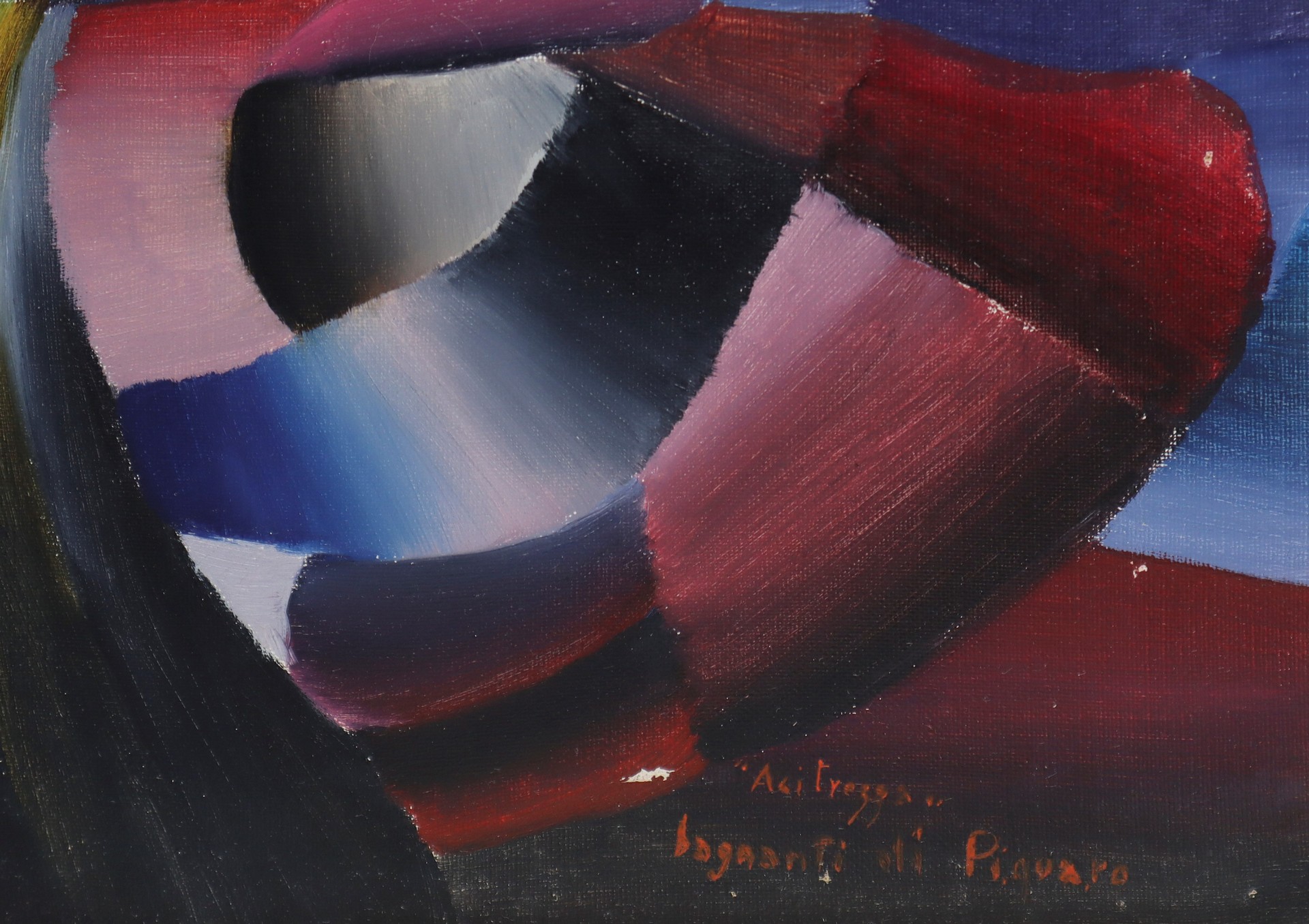Raf Occhipinti (Comiso 1933) - Bagnanti di Piavaro, 1968 cm 116x67 Olio su tela Firmato in basso a sinistra e datato 68 e in basso a destra titolato Bagnanti di Piavaro. Sul retro firmato