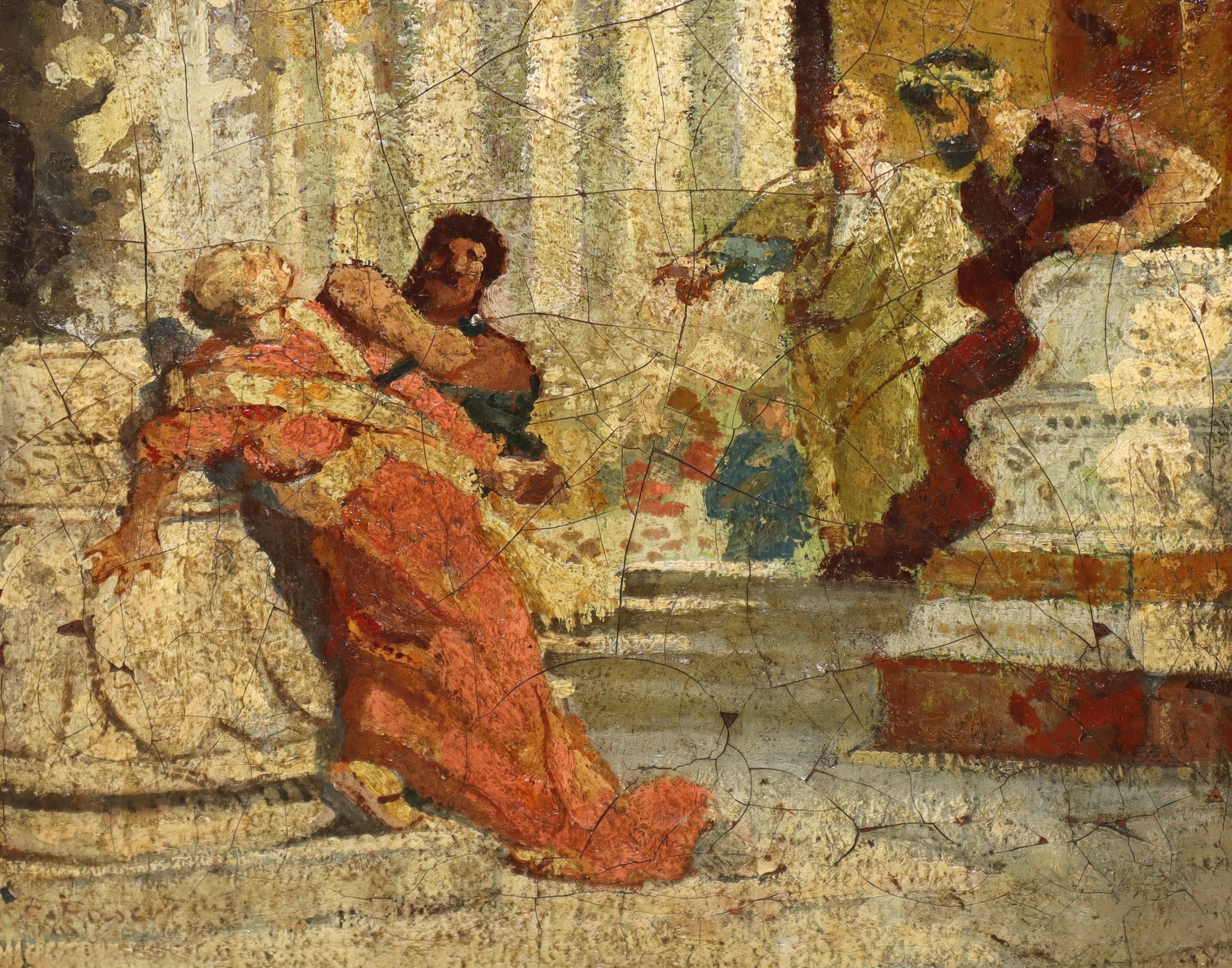 Uccisione di Cesare, 19° secolo cm 47x32 in cornice cm 66x50 Olio su tela