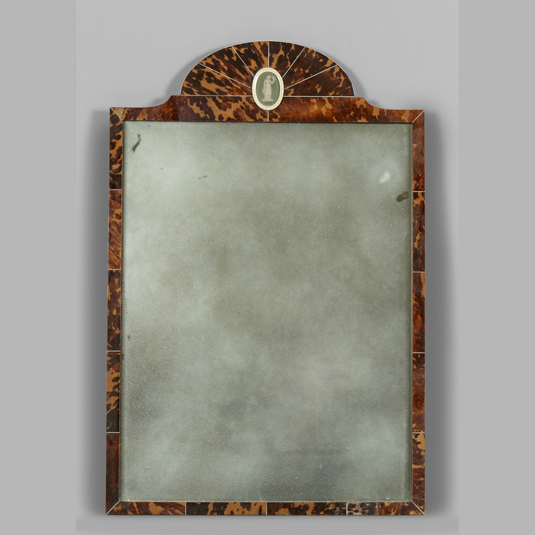 Specchio da toilette Decò lastronato in tartaruga parte superiore con medaglione in porcellana di Wedgewood con cornice in avorio inizi sec.XX