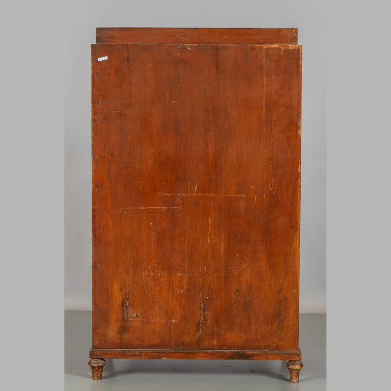Piccola credenza lastronata in ciliegio due sportelli con vetro e parte superiore a ripiani sec.XIX