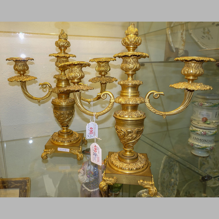 Coppia di candelabri a tre luci in bronzo dorato Francia sec.XIX