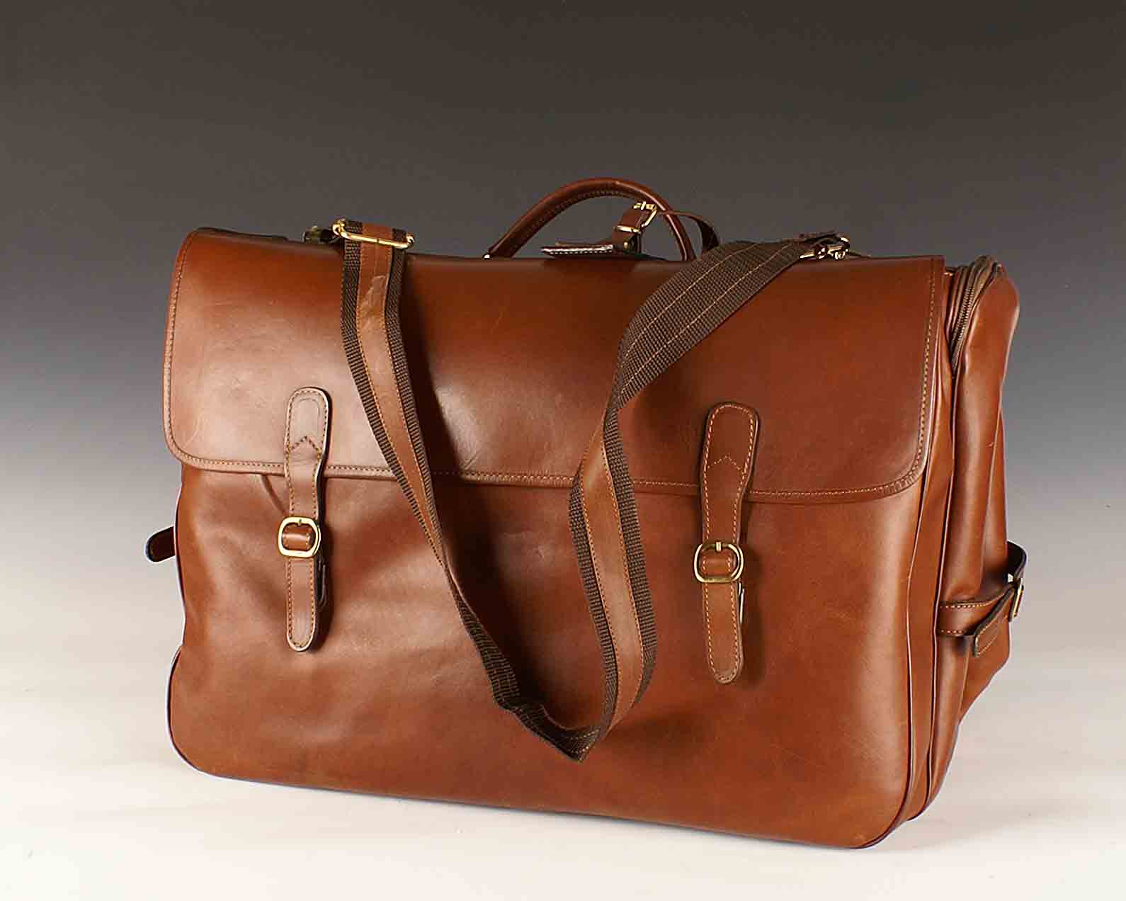 Valigia porta abiti in cuoio, cm. 50x32x27.