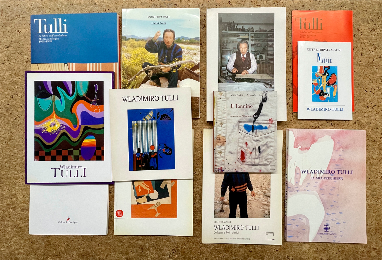 - Wladimiro Tulli. Collages e Polimaterici (a cura di Leo Strozzieri e contributo poetico di Théodore Koenig; reca firma dell'Artista all'interno)