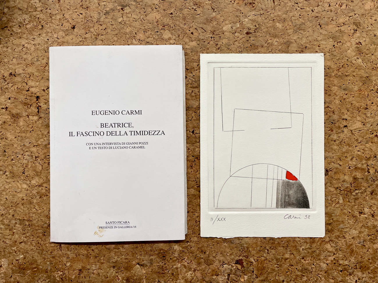 Edizione d'arte recante brani tratti da un'intervista di Gianni Pozzi a Eugenio Carmi e un testo di Luciano Caramel