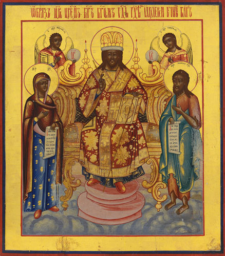 ICONA RUSSA DEL XIX SECOLO Cristo in tronoTempera all'uovo su tavola, cm...