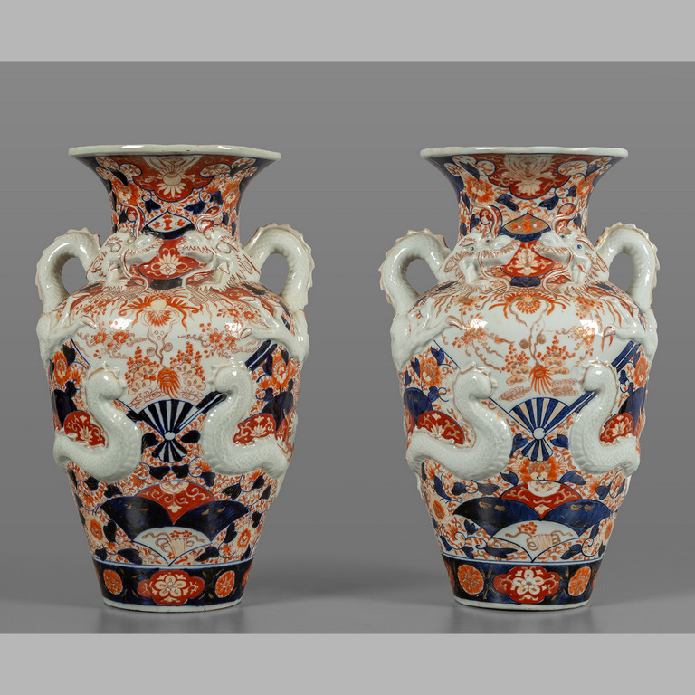 Coppia di vasi in porcellana policroma Giappone sec.XX