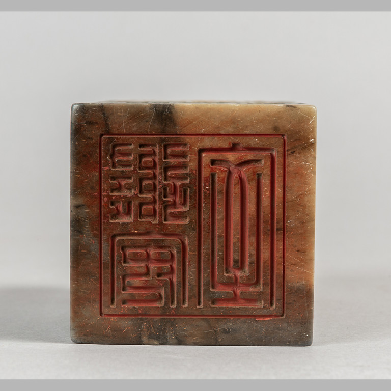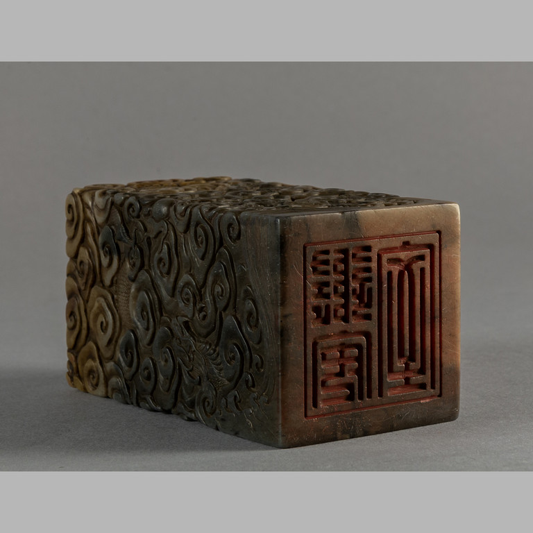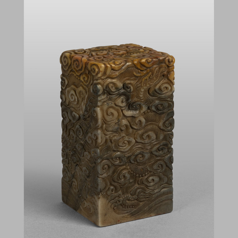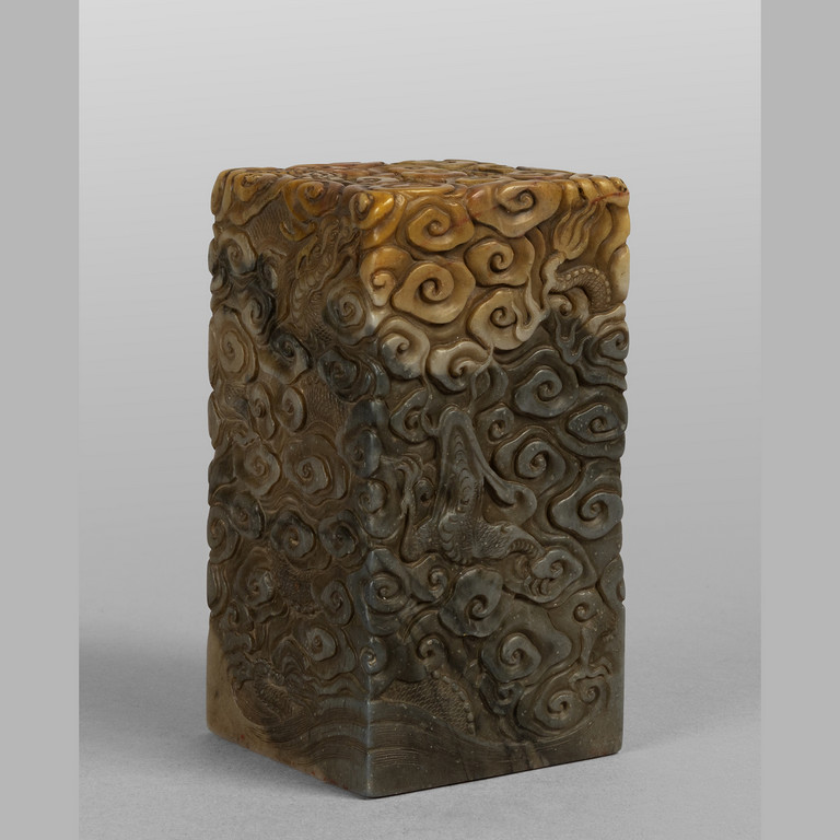 Sigillo in pietra saponaria intagliato con drago tra le nuvole Cina sec.XIX