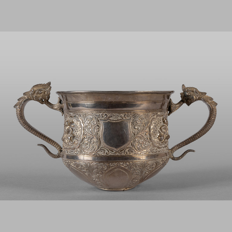 Piccola coppa in argento manici a forma di draghi sec.XIX