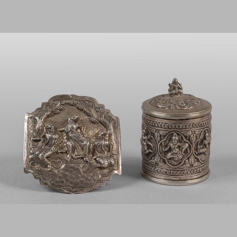 Fibbia da cintura e scatola in argento Arte Orientale sec.XIX