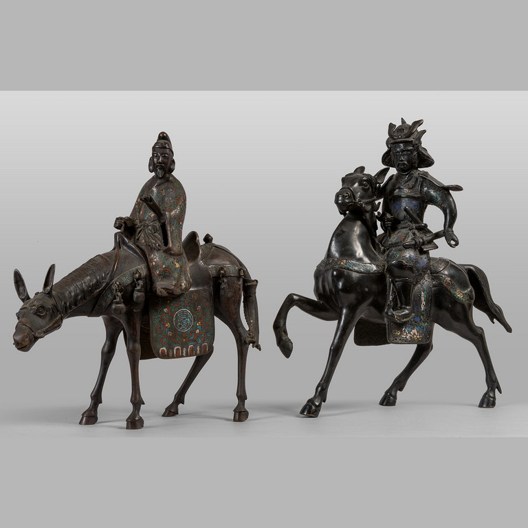 Cavalieri coppia di sculture in bronzo cloisonnè Giappone sec.XIX
