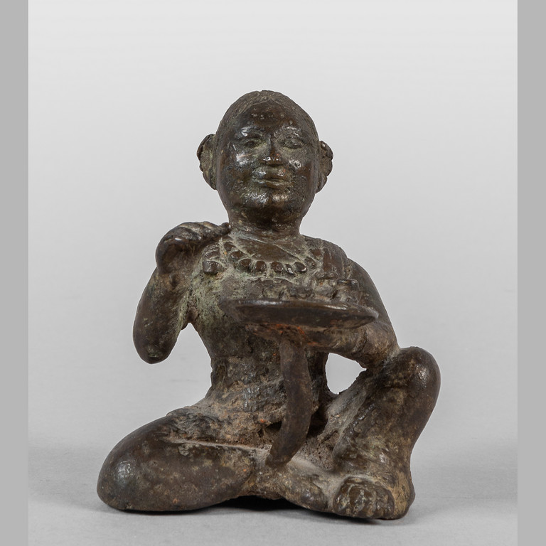 Scultura in bronzo raffigurante personaggio offerente Cina sec.XVII