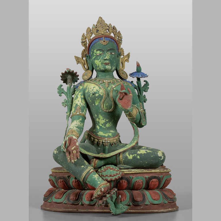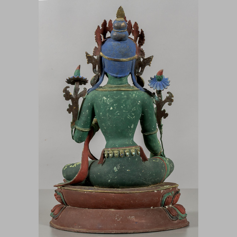 Tara verde scultura in bronzo smalto policromo e dorature nella corona intarsi in pietre dure Cina sec.XIX