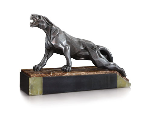 SCULTORE DEL XX SECOLO Pantera (anni '30)Metallo, base in onice e marmi vari,...