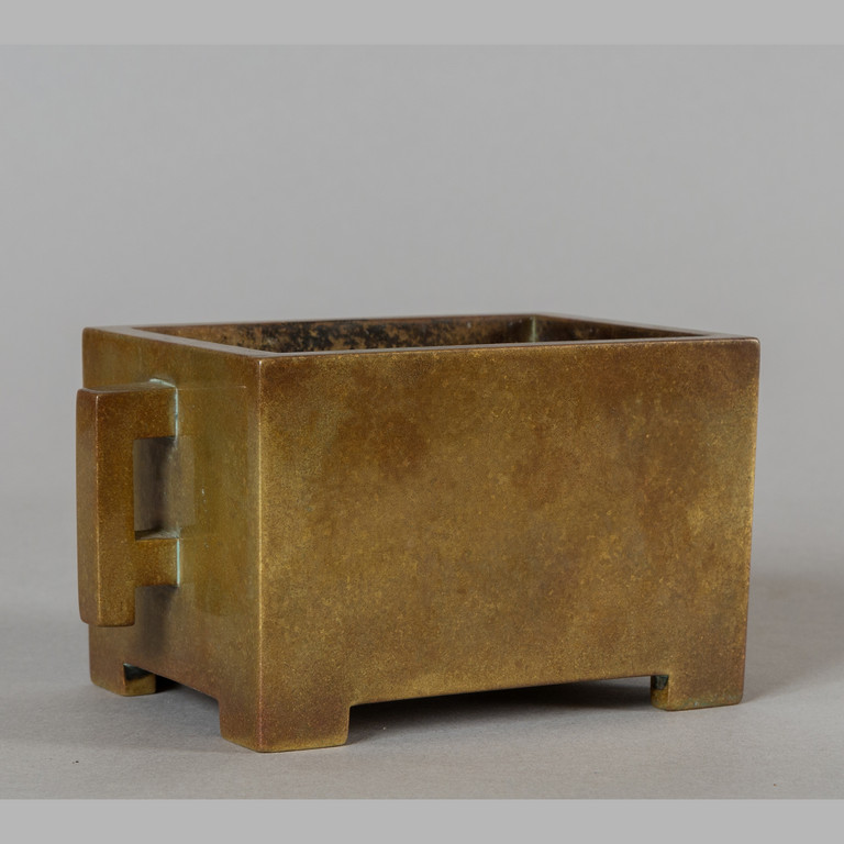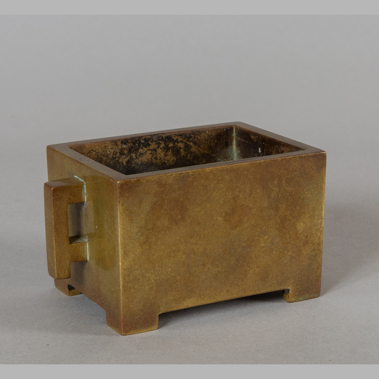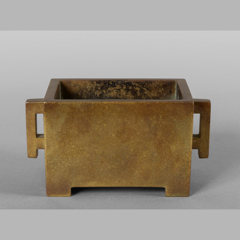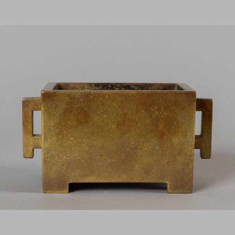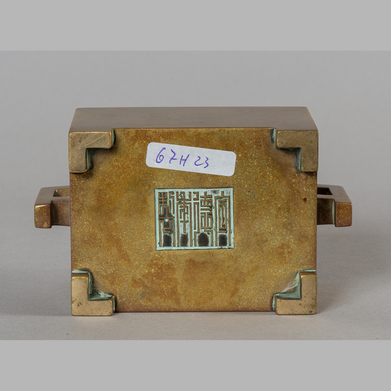 Incensiere in bronzo di forma rettangolare con manici Cina sec.XIX