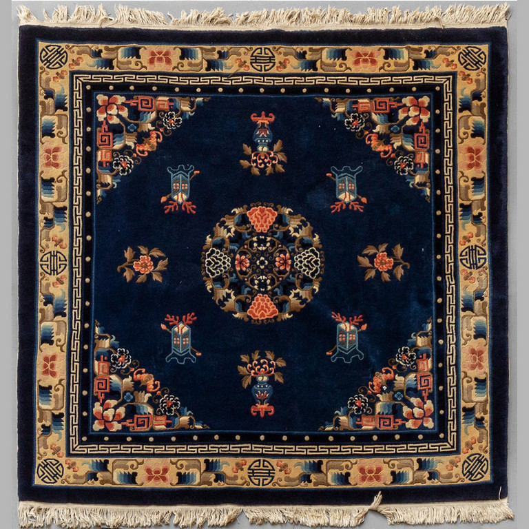 Tappeto Cina a fondo blu decorato con rosone centrale sec.XX